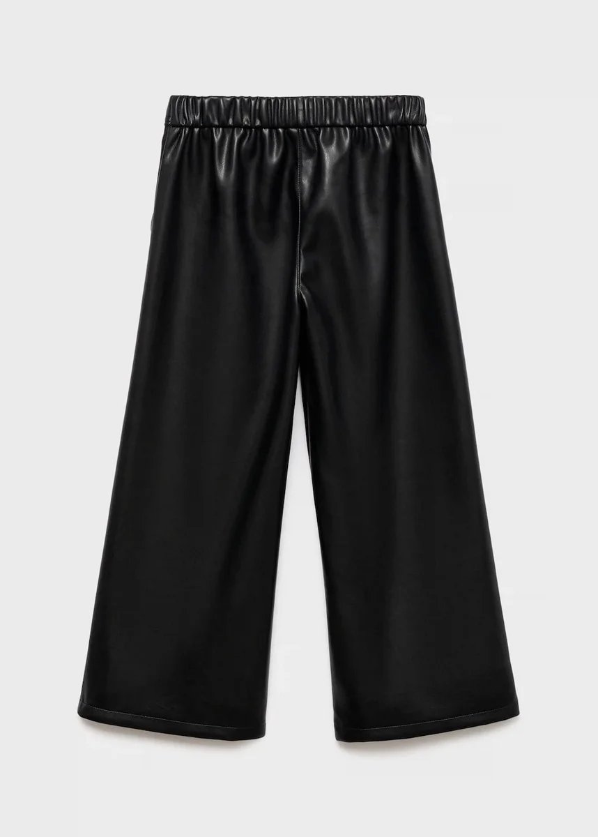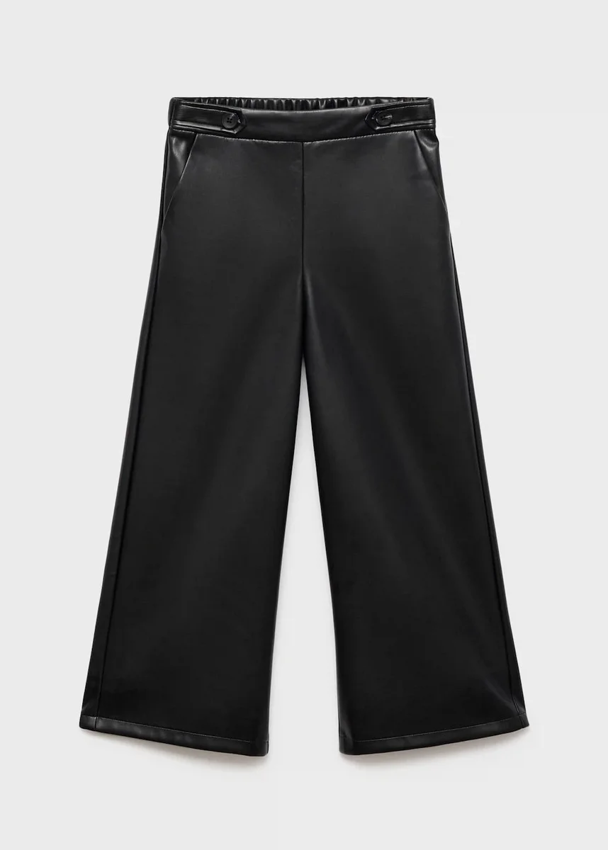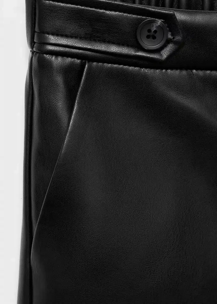 Realizzati in tessuto effetto pelle, questi pantaloni lunghi e dritti presentano una cintura elasticizzata regolabile. Hanno due tasche laterali e bottoni decorativi.