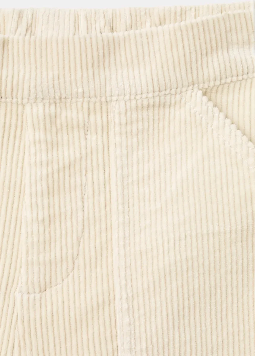 Realizzati in tessuto di cotone elasticizzato e velluto a coste, questi pantaloni lunghi a gamba larga offrono comfort e stile. La cintura elasticizzata assicura una vestibilità perfetta, mentre le due tasche laterali e le due tasche a filetto sul retro aggiungono funzionalità.