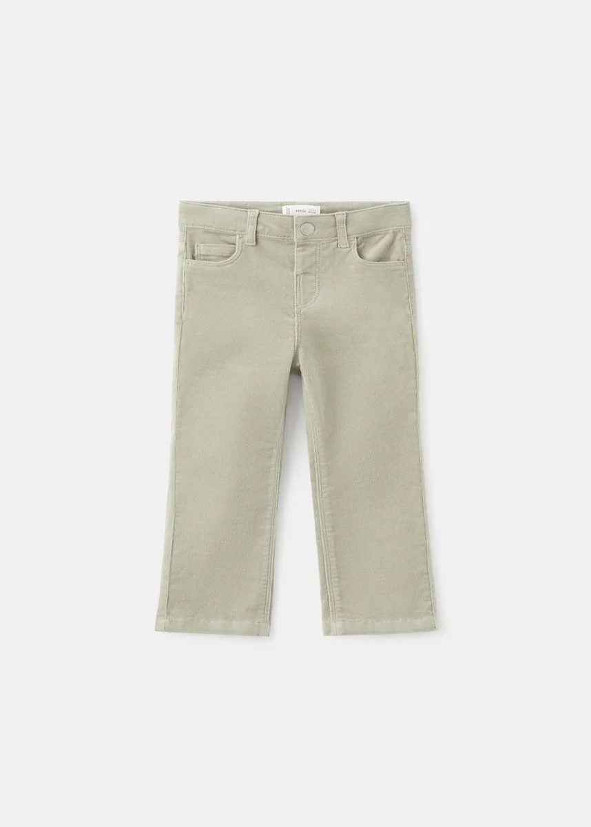 Tessuto misto cotone. Tessuto velluto a coste. Modello a campana. Modello lungo. Passanti per cintura. Cinque tasche. Chiusura con un bottone a pressione.