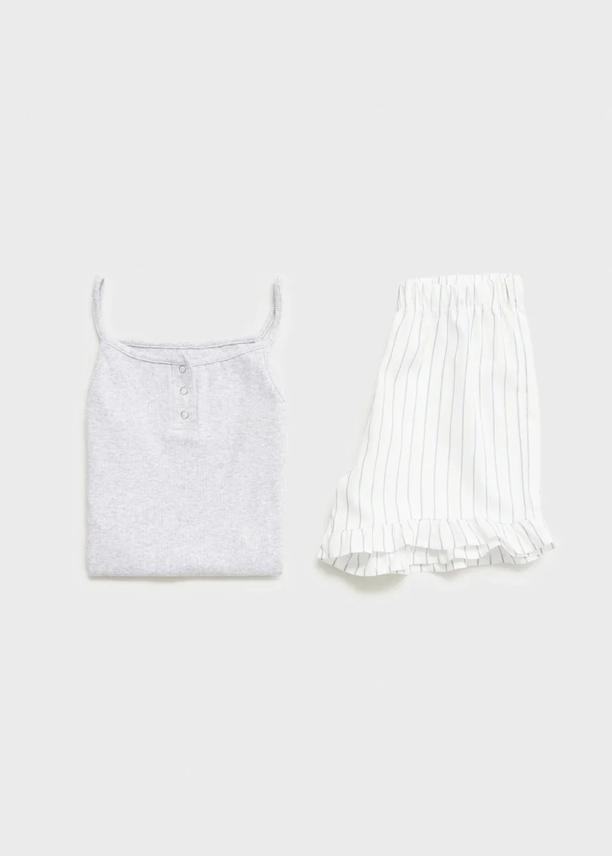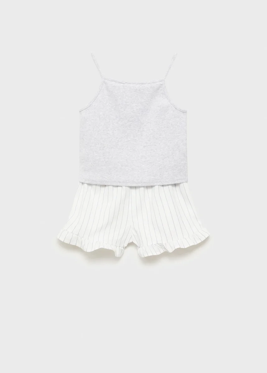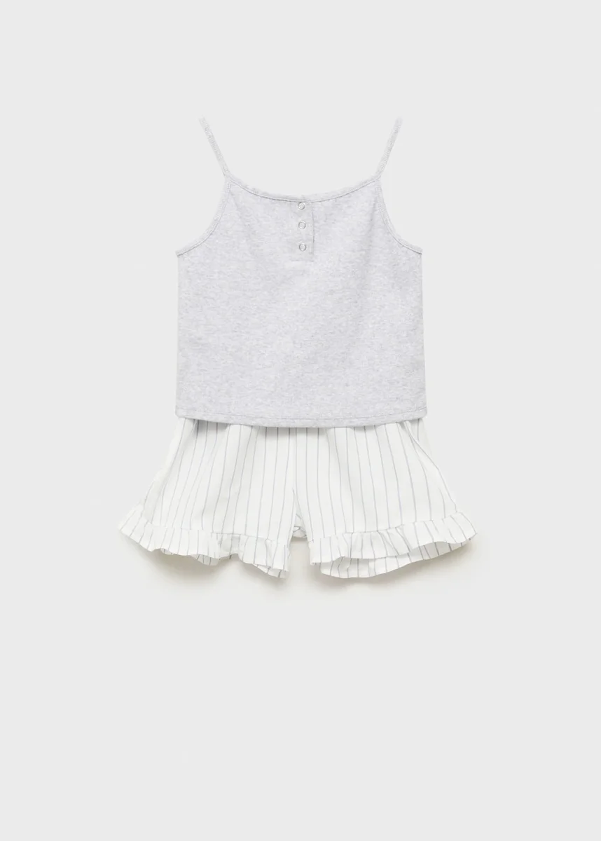 100% cotone. Modello corto. Design combinato. Spalline sottili. Girocollo. Orlo con volant. Chiusura con tre bottoni