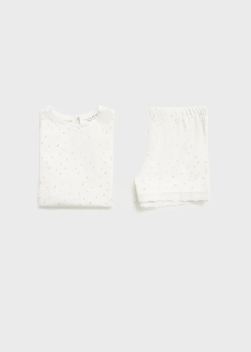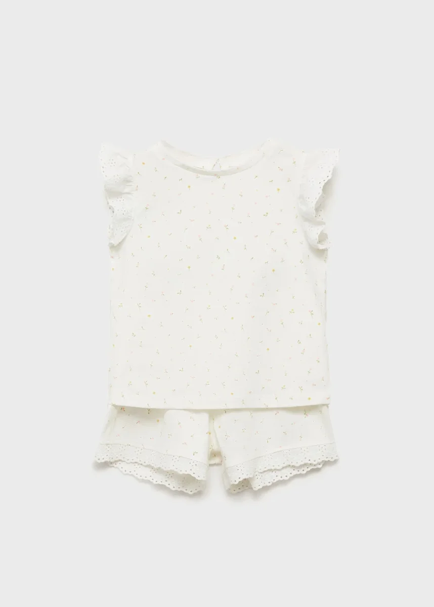 100% cotone. Design dritto. Design corto. Design stampato. Finitura ricamata. Girocollo. Maniche corte con volant. Chiusura con bottoni sul retro. Prodotto in promozione.