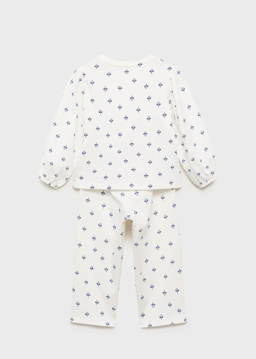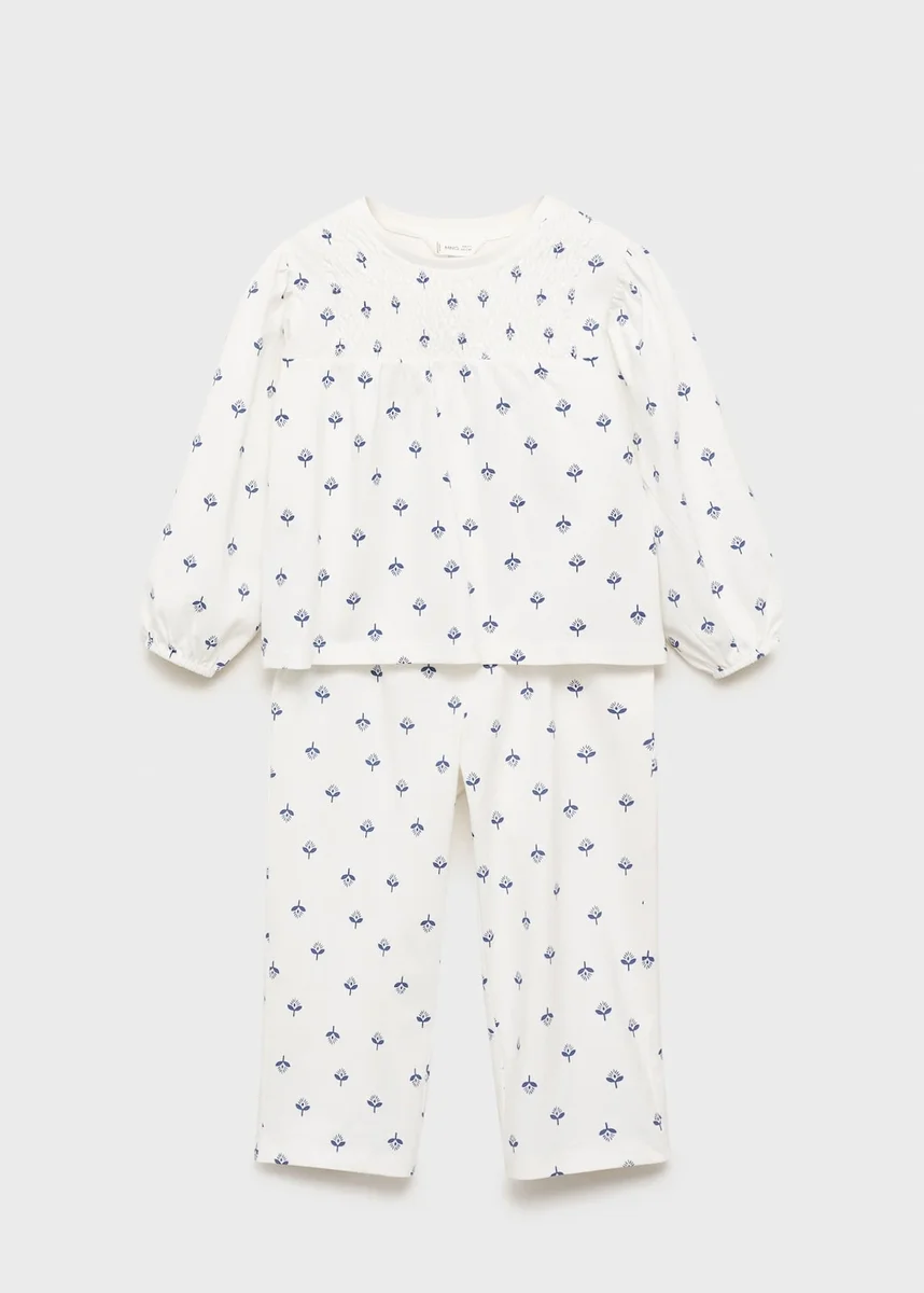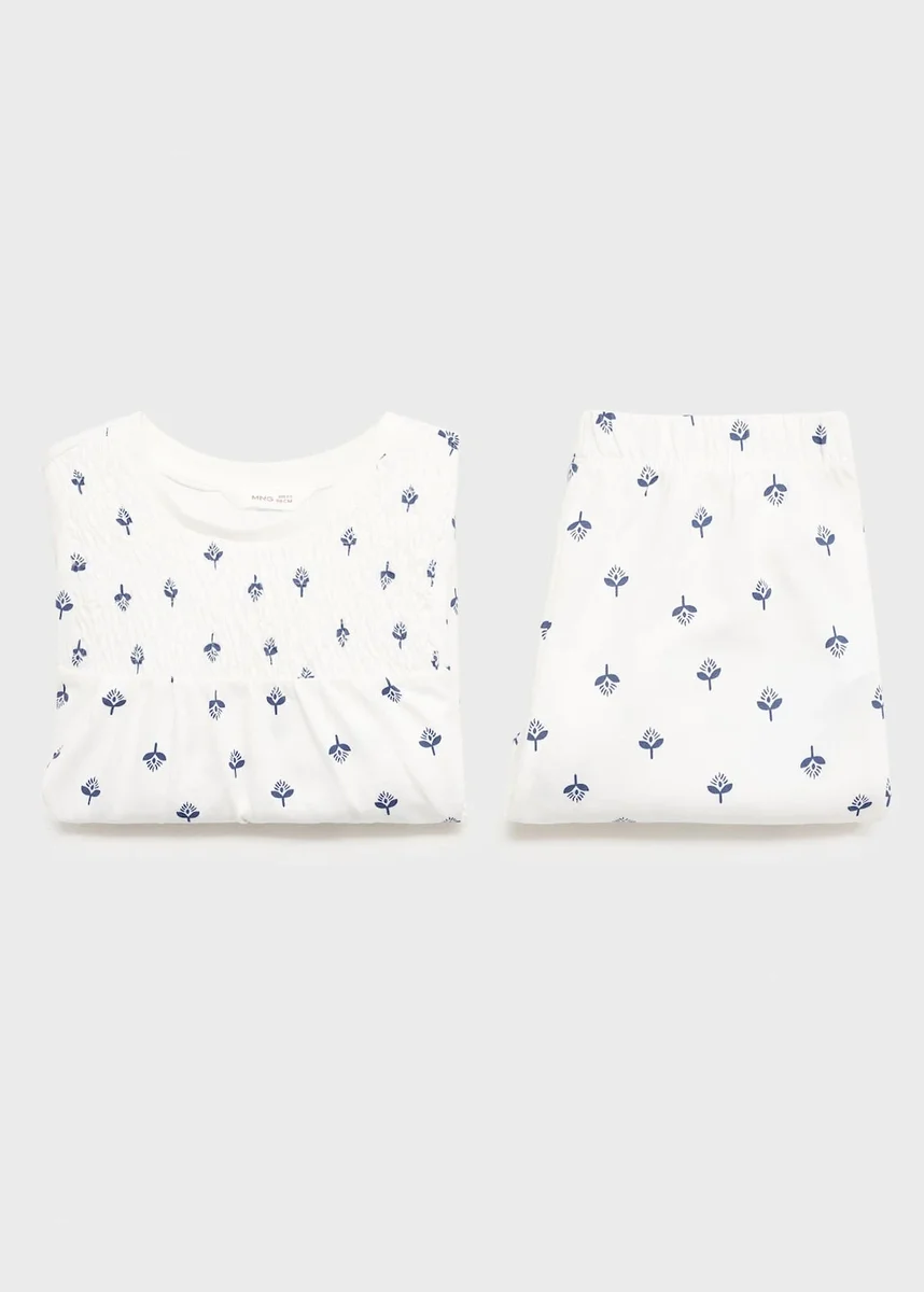 Tessuto in cotone. Taglio lungo. Motivo stampato. Girocollo. Maniche lunghe con polsini elasticizzati. Elastico in vita. Motivo a nido d’ape. Set pigiama due pezzi. Black Friday.