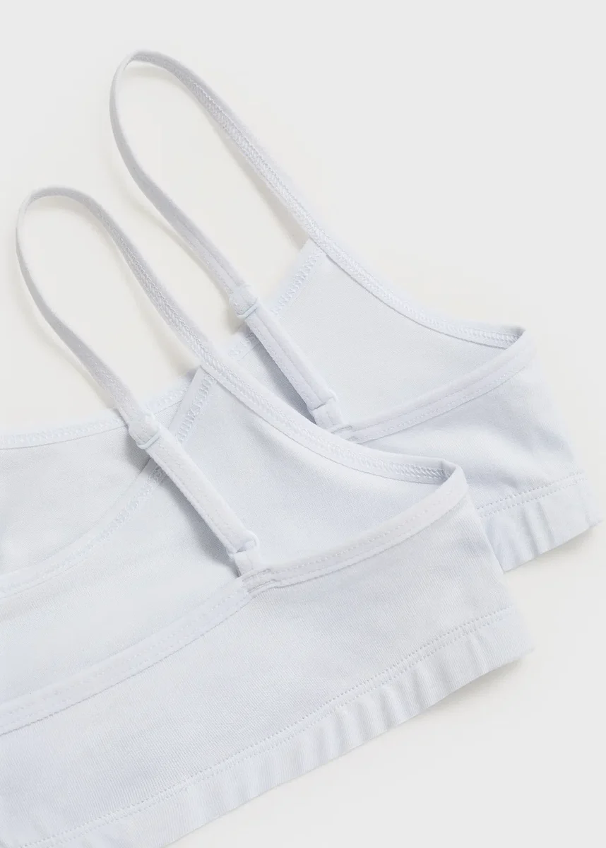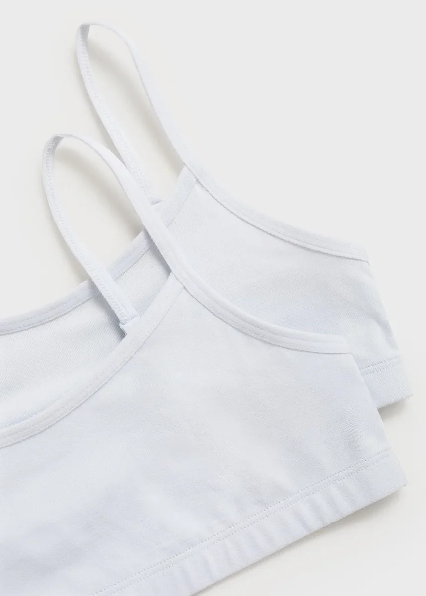Tessuto in cotone. Tessuto elasticizzato. Design semplice. Spalline sottili. Orlo con elastico. Senza chiusura.
