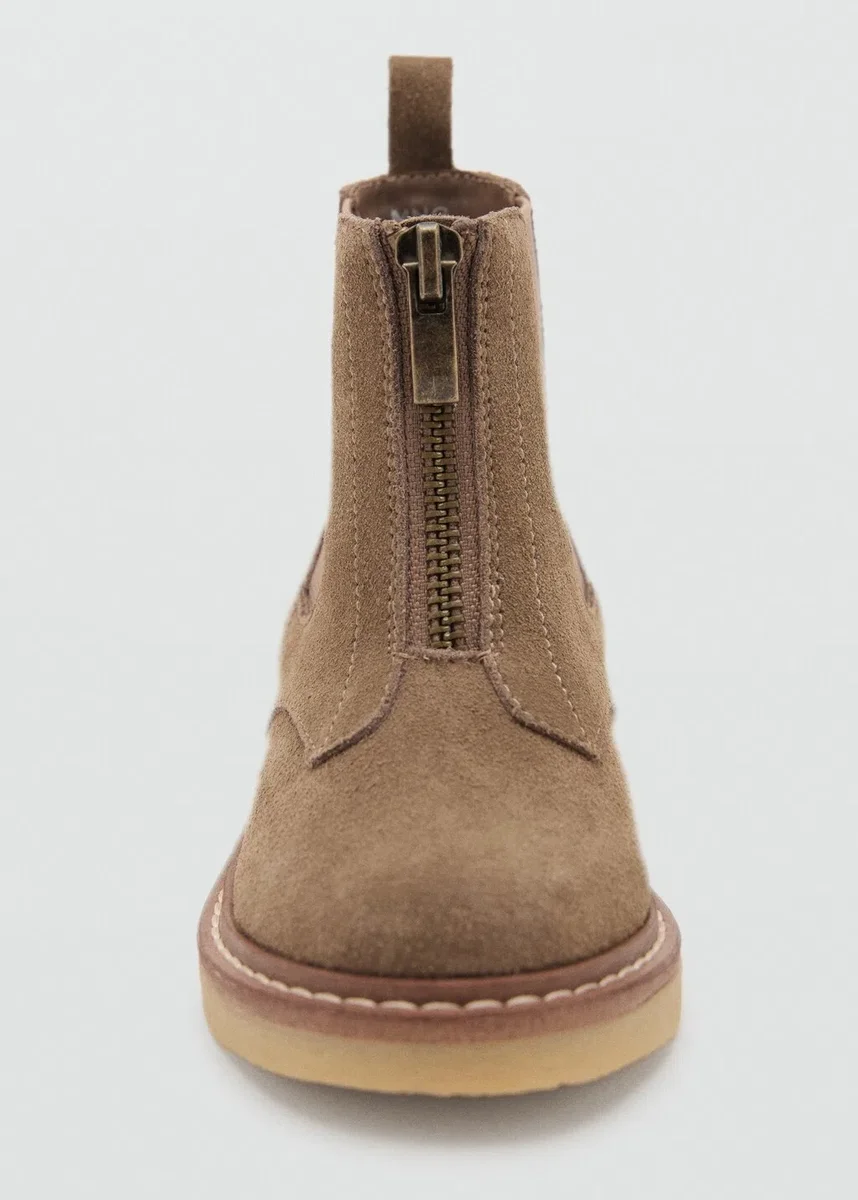 Pelle bovina. Punta arrotondata. Pannelli laterali elasticizzati. Chiusura frontale con cerniera. Suola in gomma. Ritorno a scuola. Black Friday