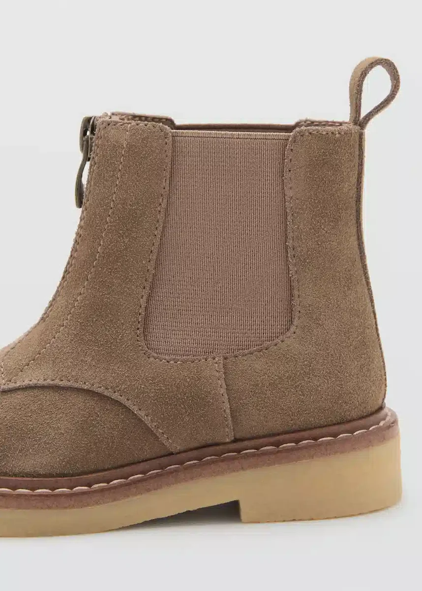Pelle bovina. Punta arrotondata. Pannelli laterali elasticizzati. Chiusura frontale con cerniera. Suola in gomma. Ritorno a scuola. Black Friday.