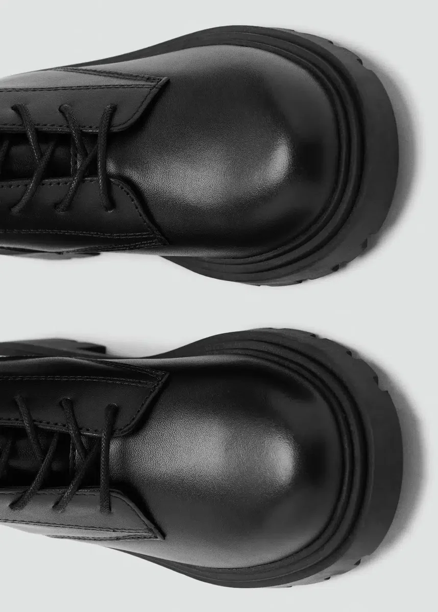Pelle bovina. Punta arrotondata. Chiusura con lacci. Chiusura con cerniera. Suola dentellata