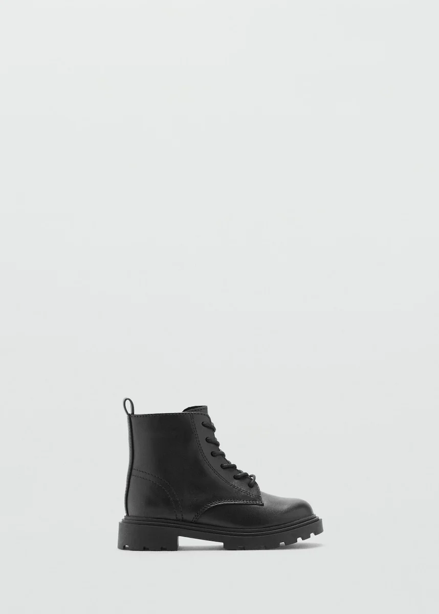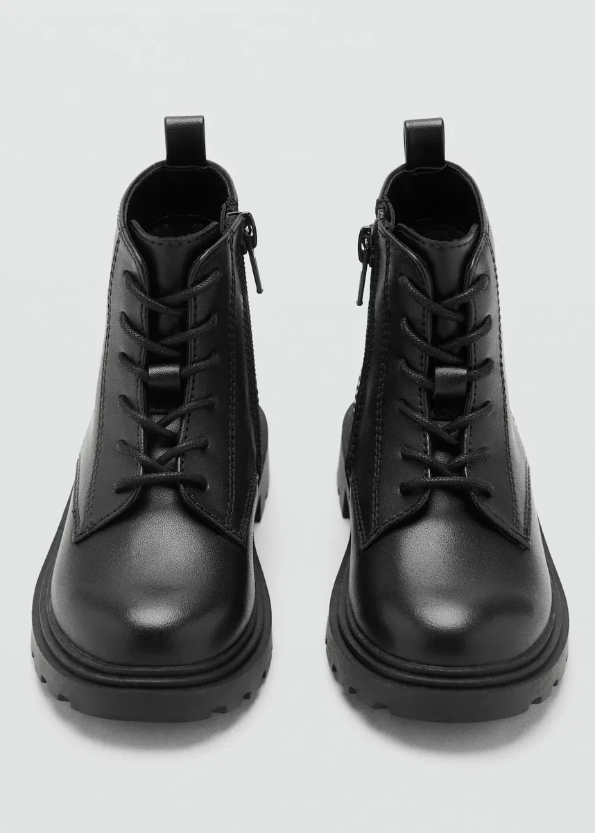 Pelle bovina. Tessuto poliuretanico. Modello stivale. Punta tonda. Chiusura con lacci. Chiusura con cerniera. Suola dentellata.
