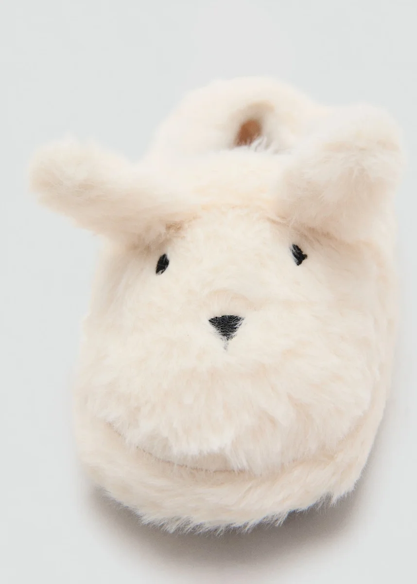 Tessuto in pelliccia. Design con coniglietto. Pantofola. Collezione Natale