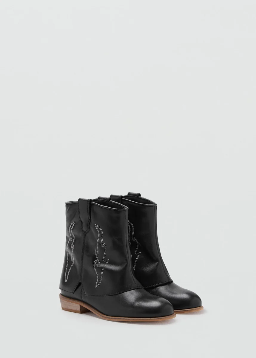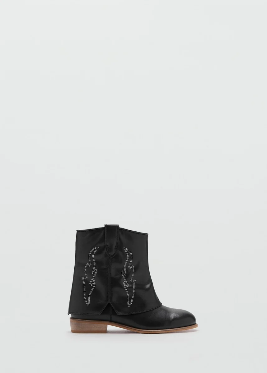 Pelle bovina. Punta arrotondata. Dettagli ricamati. Black Friday