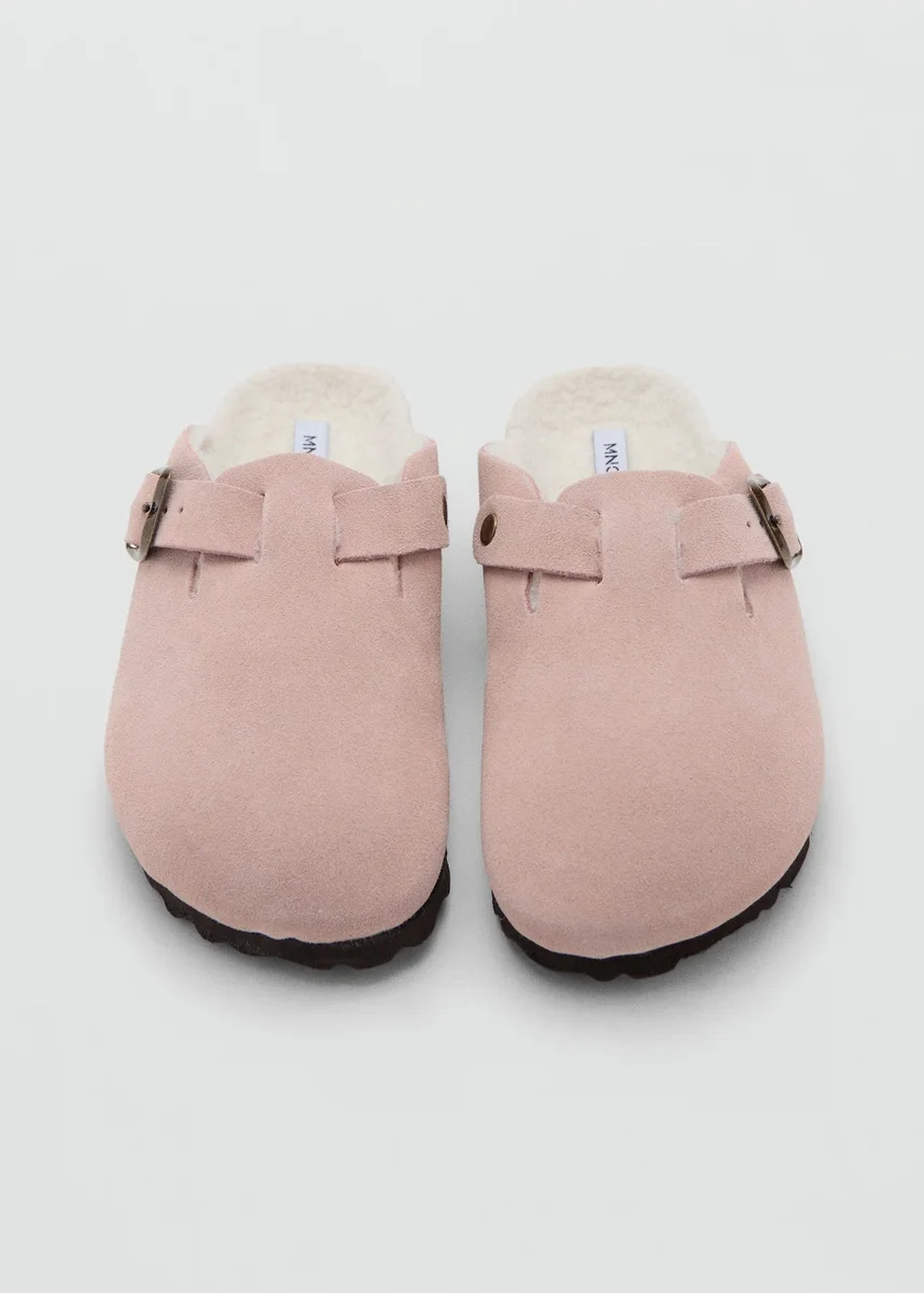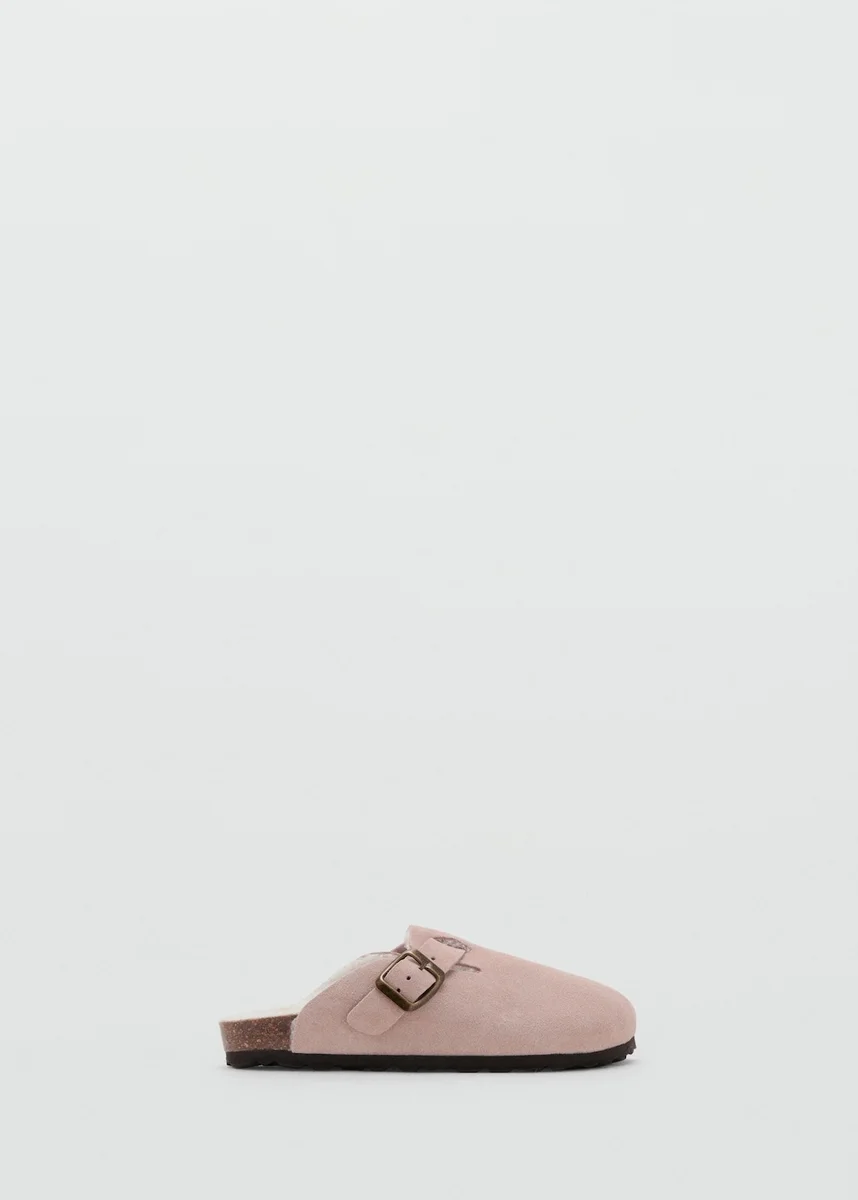 100% pelle bovina. Modello zoccolo. Interno in finta pelle di montone. Punta arrotondata. Fibbia regolabile. Prodotto in Spagna