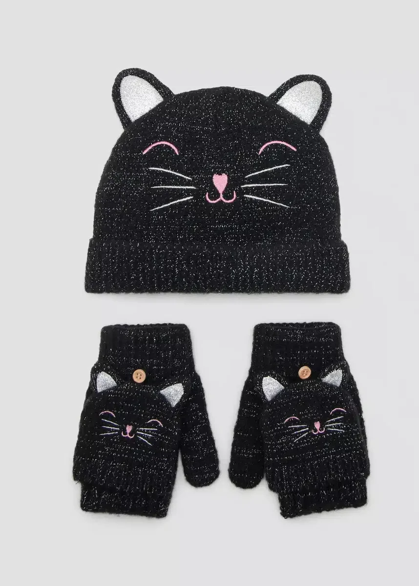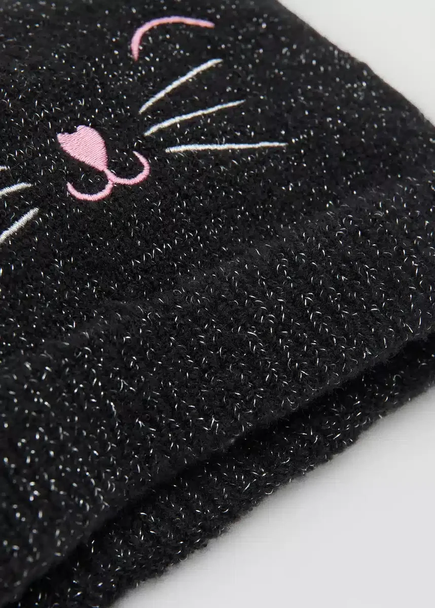 Tessuto lurex. Design brillante. Design con orecchie. Design con gattino. Dettaglio risvolto. Set disponibile. Collezione Halloween.