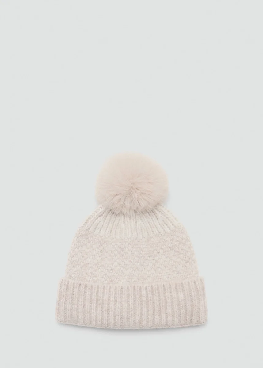 Tessuto lavorato a maglia. Dettaglio nappina. Orlo risvoltato. Design a costine. Set disponibile. Collezione Natale