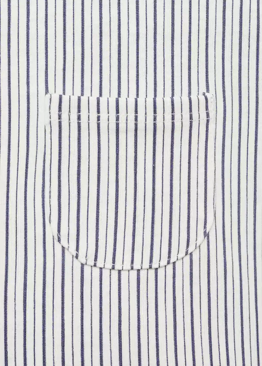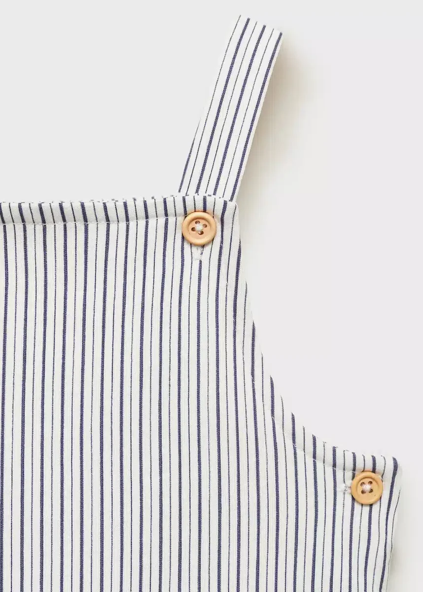 100% cotone. Modello dritto. Modello corto. Modello a righe. Collo dritto. Senza maniche. Spalline larghe. Chiusura frontale con bottoni.