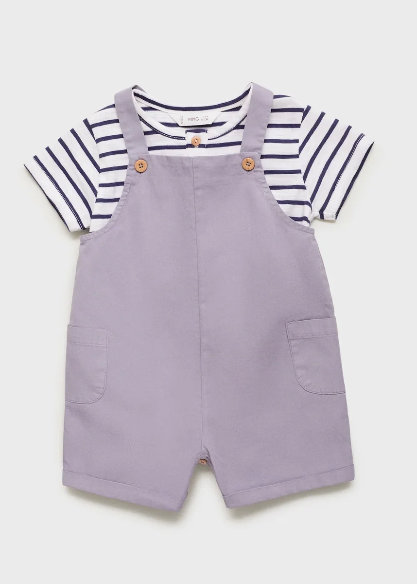 Tessuto 100% cotone. Stile jeans denim. Design dritto. Design corto. Scollo dritto. Spalline con chiusura a bottone. Tasche laterali. Apertura inferiore con chiusura a bottone. Set. Black Friday