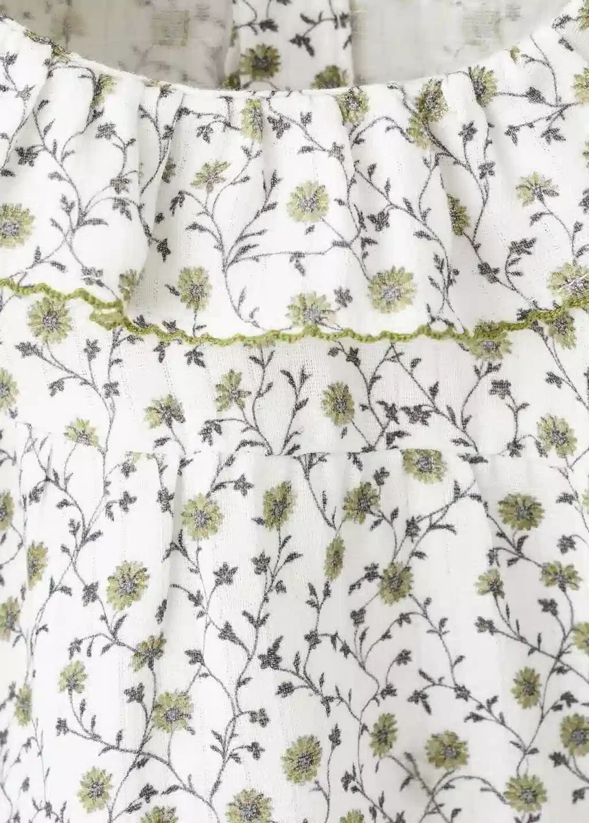 Tessuto 100% cotone. Stampa floreale. Colletto Peter Pan. Dettaglio ricamato sul collo. Maniche lunghe. Chiusura con bottoni sul retro. Apertura sul fondo con chiusura a bottoni. Collezione Natale. Composizione: 100% cotone Lavabile in lavatrice a max 30°C / 85°F Non candeggiare Stirare a max 110°C / 230°F Non lavare a secco Non asciugare in asciugatrice Tessuto 100% cotone. Stampa floreale. Colletto Peter Pan. Dettaglio ricamato sul collo. Maniche lunghe. Chiusura con bottoni sul retro. Apertura sul fondo con chiusura con bottoni. Collezione Natale