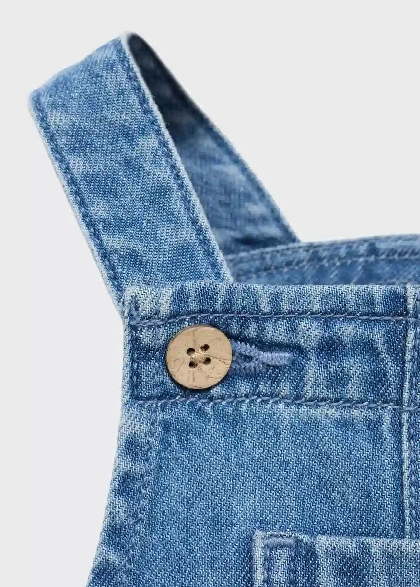 Tessuto 100% cotone stile denim. Design dritto. Design lungo. Scollo quadrato. Spalline larghe. Tasca applicata sul petto. Tasca applicata sul retro. Chiusura con bottoni.