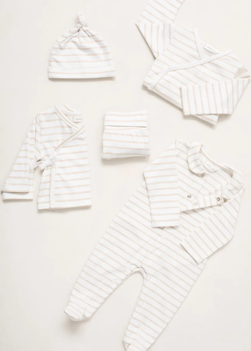 Tessuto in cotone. Tessuto elasticizzato. Design a righe. Dettaglio con nodo. Orlo sul fondo. Collezione Welcome. Collezione Maternity