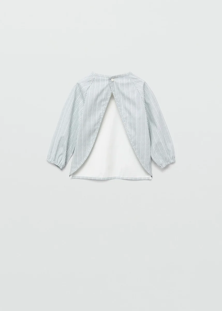 Tessuto impermeabile. Tessuto a righe. Design dritto. Girocollo. Maniche lunghe. Tasca applicata sul davanti. Chiusura con bottoni sul retro.