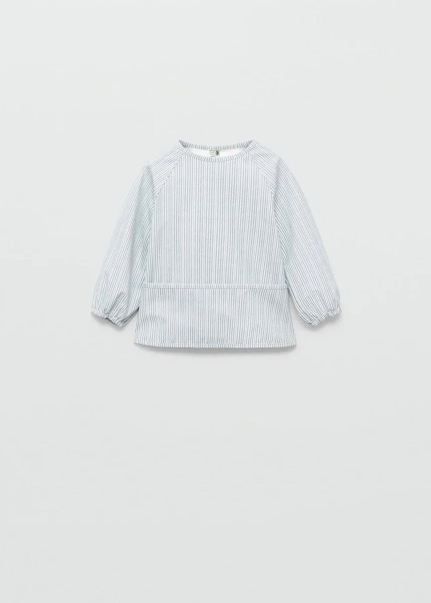 Tessuto impermeabile. Tessuto a righe. Design dritto. Girocollo. Maniche lunghe. Tasca applicata sul davanti. Chiusura con bottoni sul retro. 35 x 30 cm