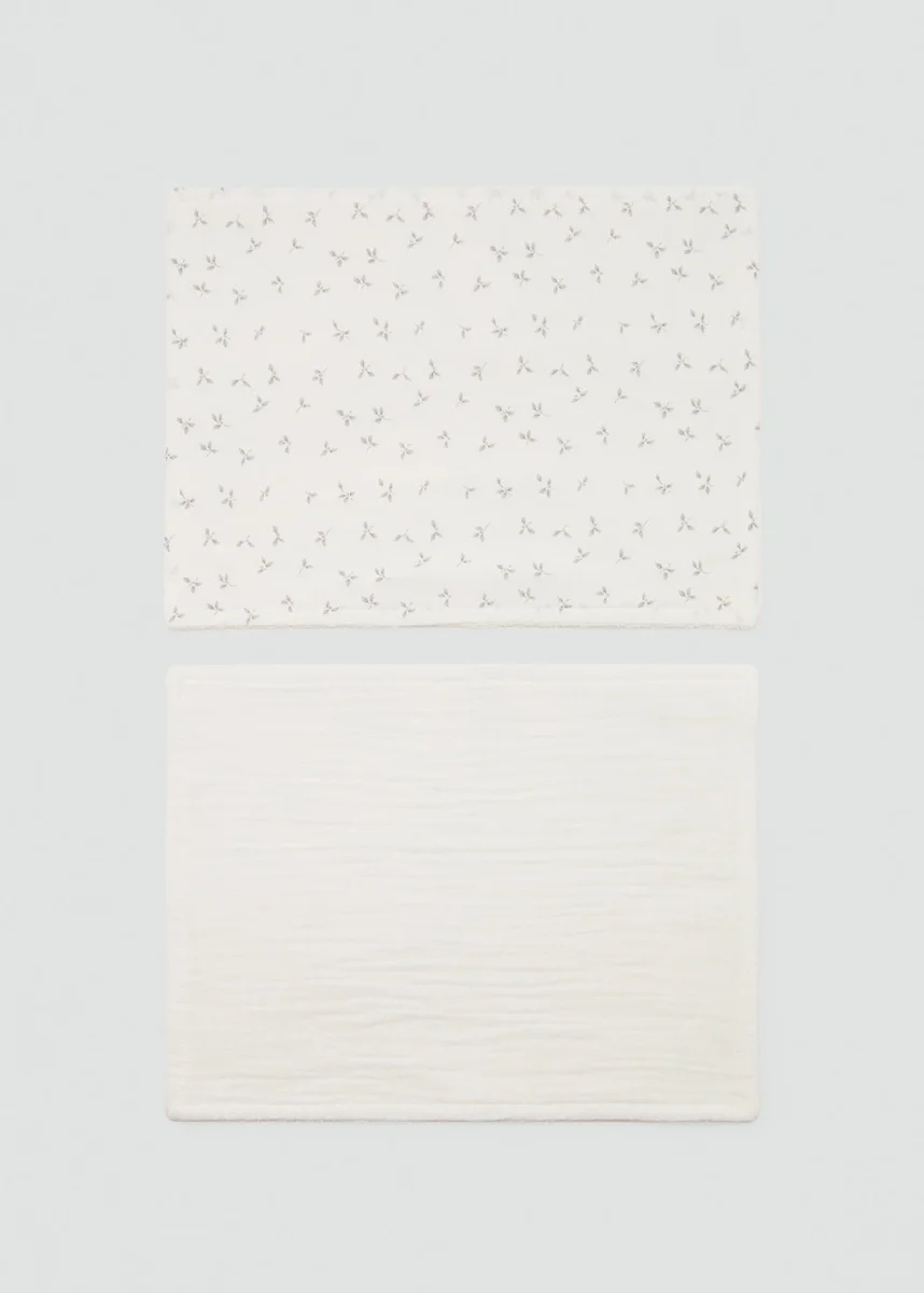 Confezione da 2. Tessuto in cotone. Motivo floreale stampato. Piacevole e morbido al tatto. Ideale per un riposo confortevole dei più piccoli a casa. Coordinabile con altri prodotti della collezione. Set disponibile. Collezione Welcome. Collezione Maternity. Black Friday. 24x10x12 cm (Lunghezza x Altezza x Larghezza)