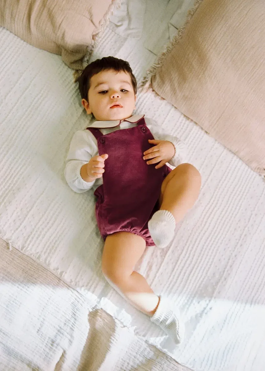 Tessuto 100% cotone. Design dritto. Colletto Peter Pan. Colletto a contrasto. Maniche lunghe con polsini elasticizzati. Chiusura frontale con bottoni. Collezione Natale