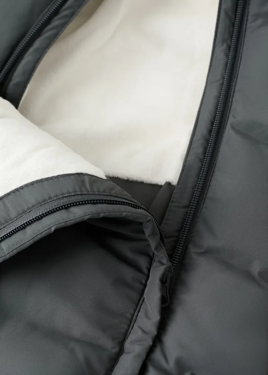 Tessuto trapuntato. Modello lungo. Cappuccio con dettagli in pelo sintetico. Chiusura frontale con zip. Maniche lunghe. Fodera interna in pile polare. Black Friday.