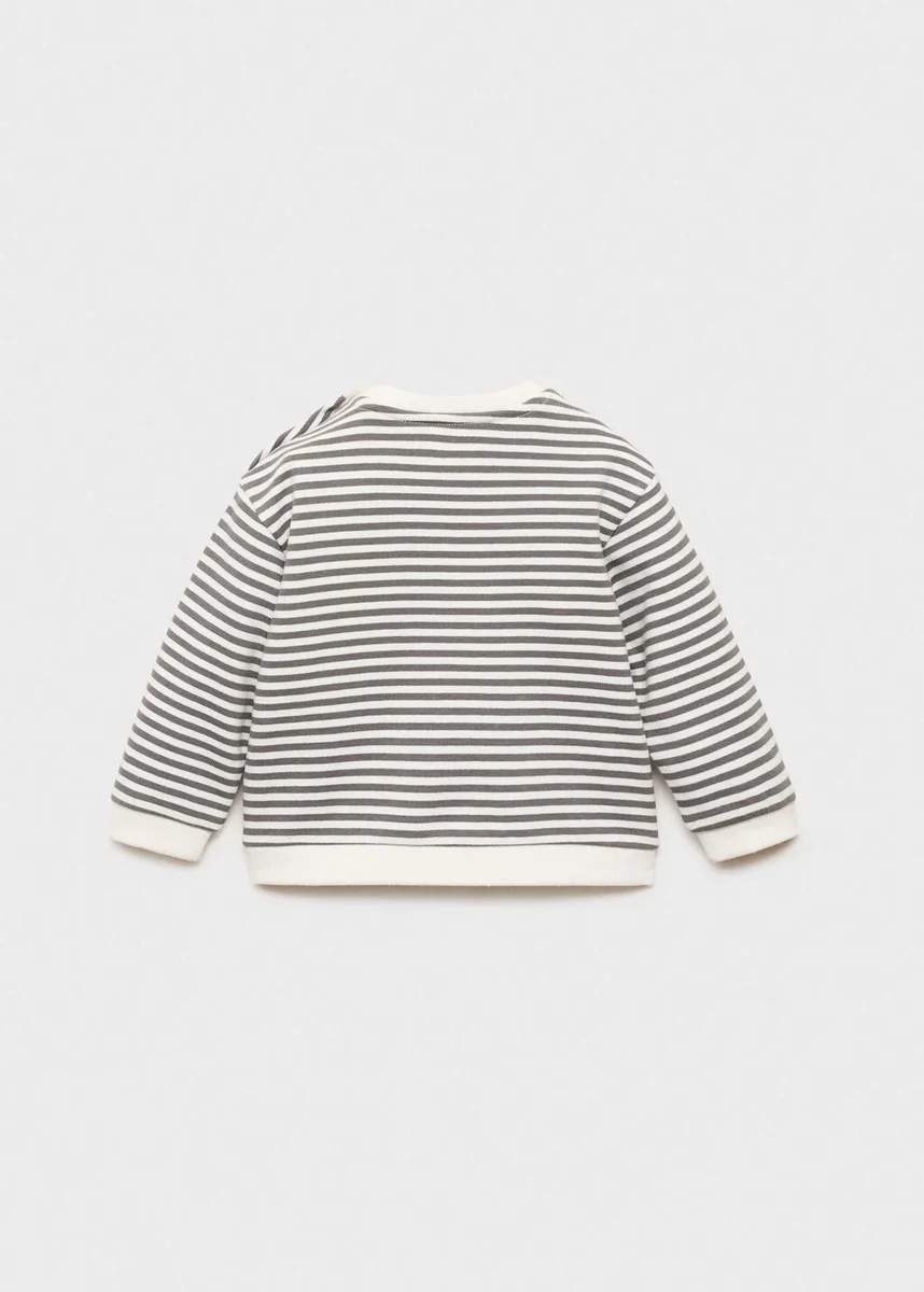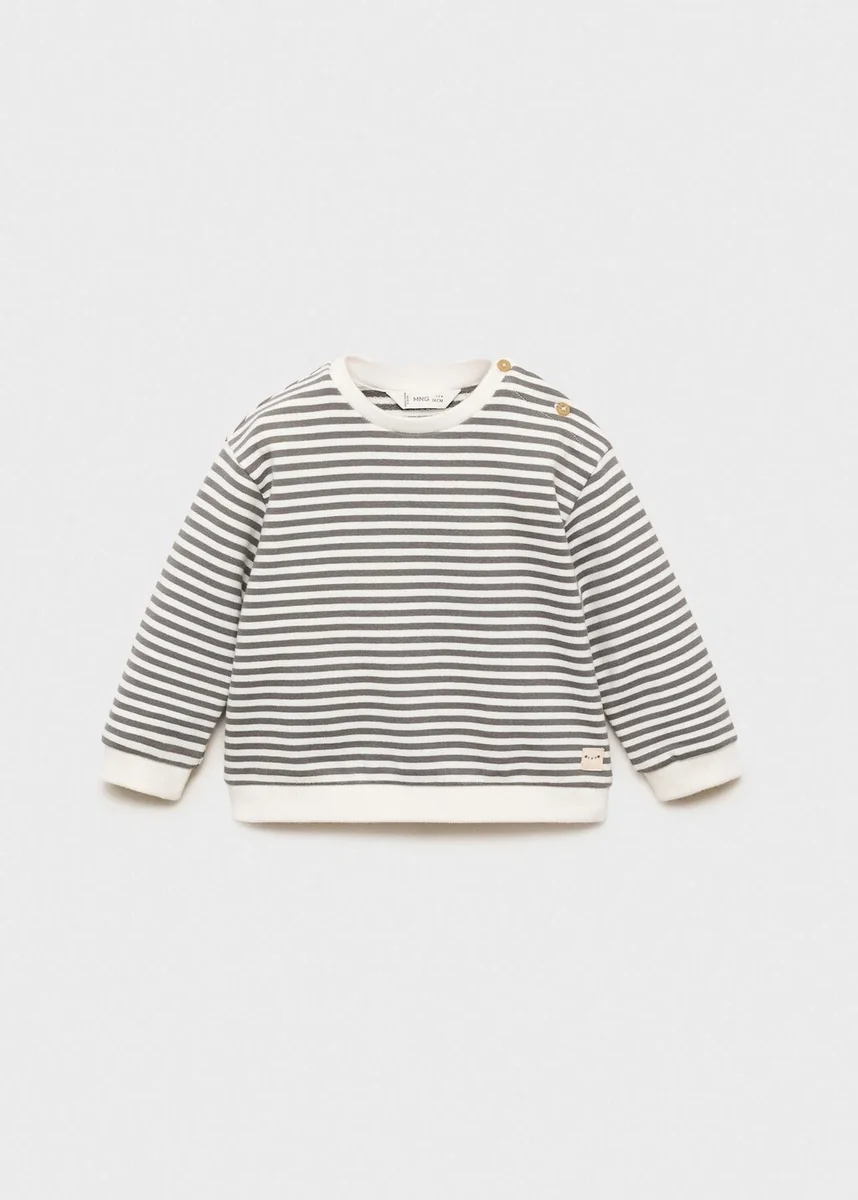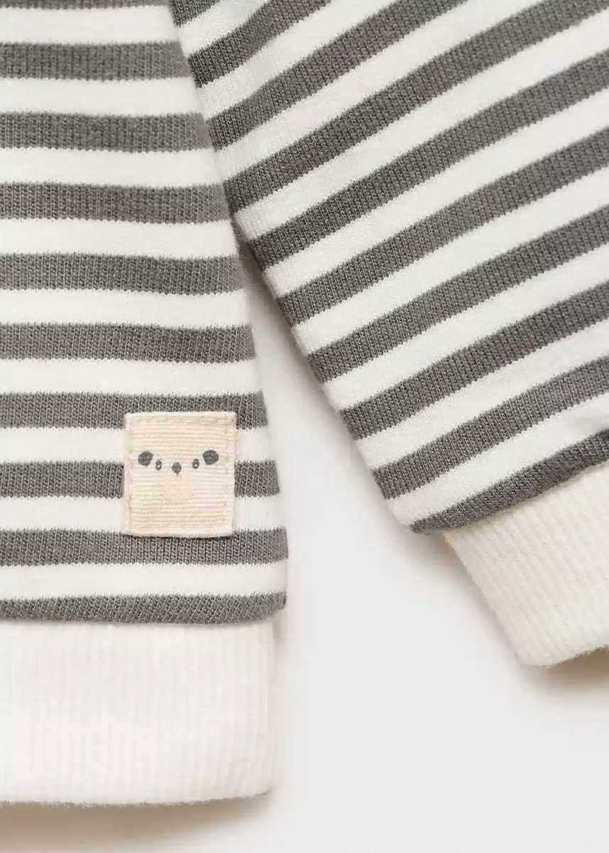 Tessuto 100% cotone. Design dritto. Design a righe. Girocollo. Maniche lunghe. Finiture a contrasto. Finiture a costine. Chiusura con bottoni sulla spalla.