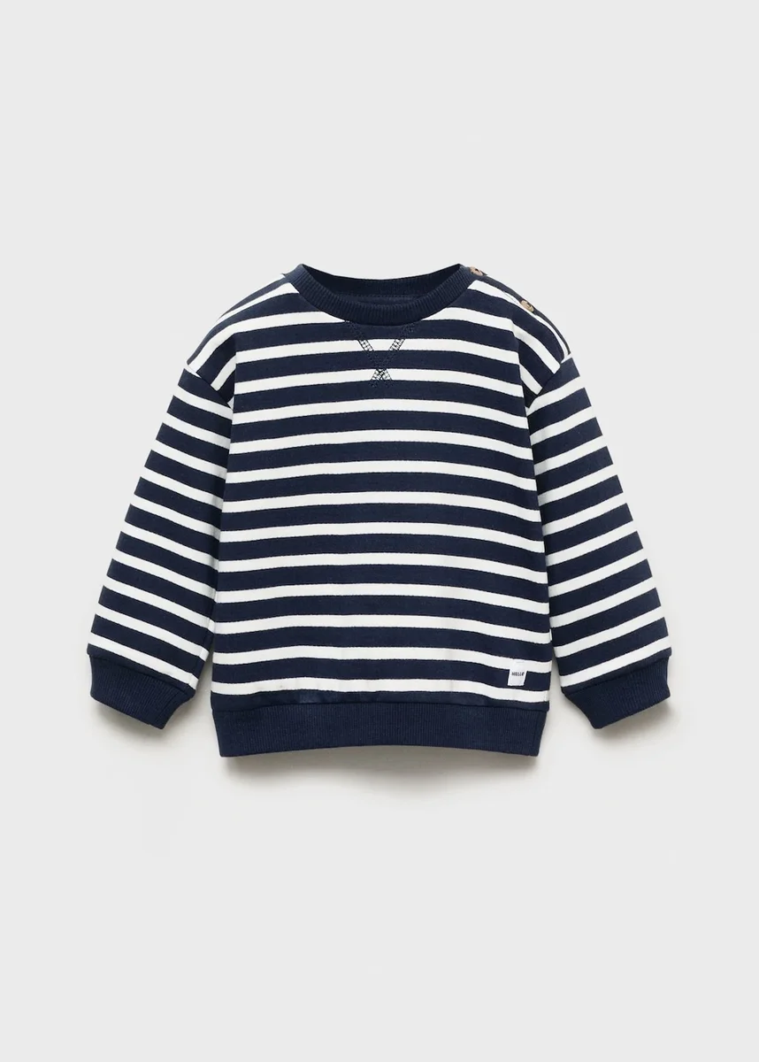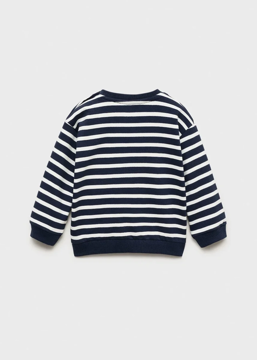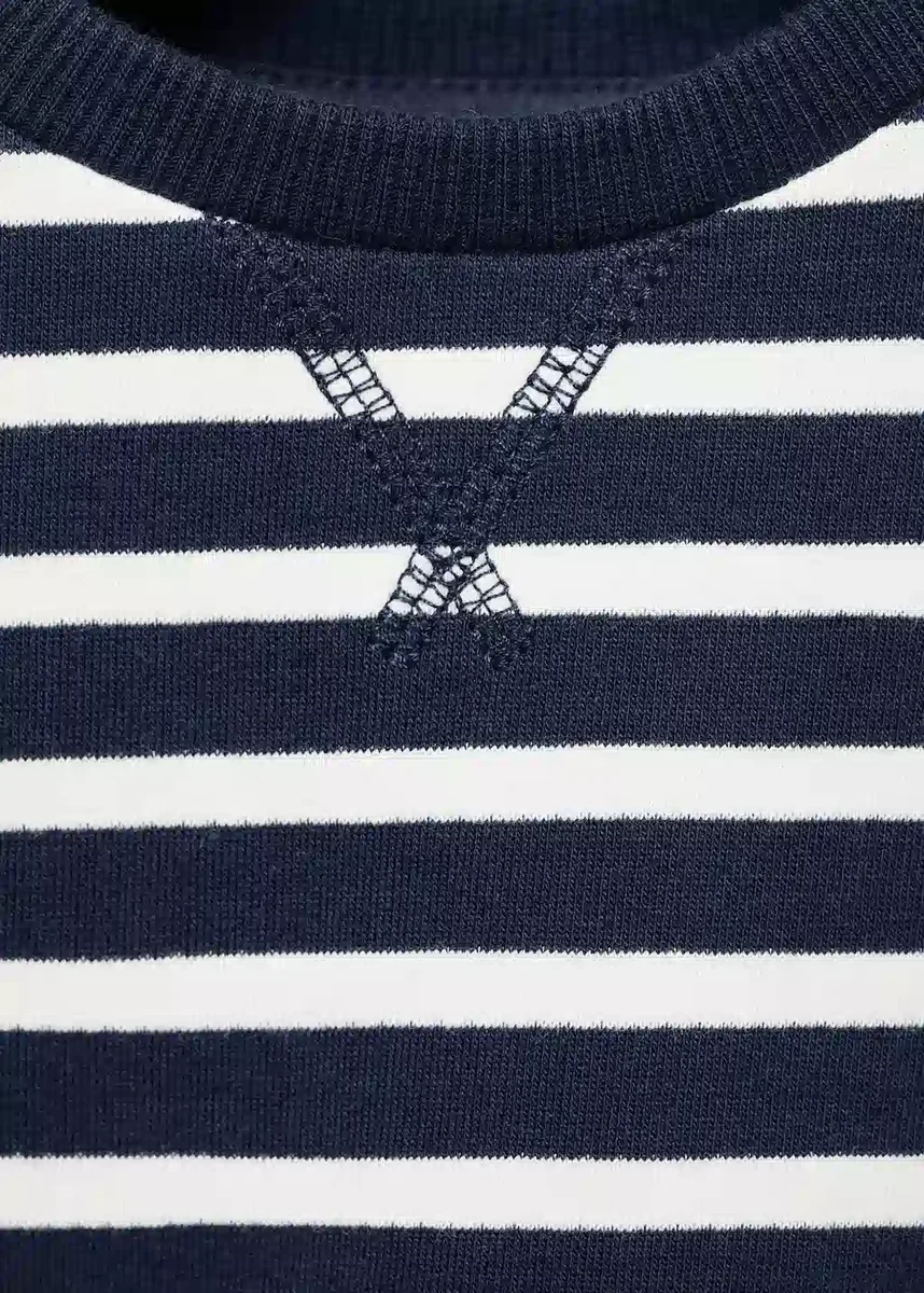 Tessuto 100% cotone. Design dritto. Design a righe. Girocollo. Maniche lunghe. Collo, polsini e orlo a costine. Toppa decorativa