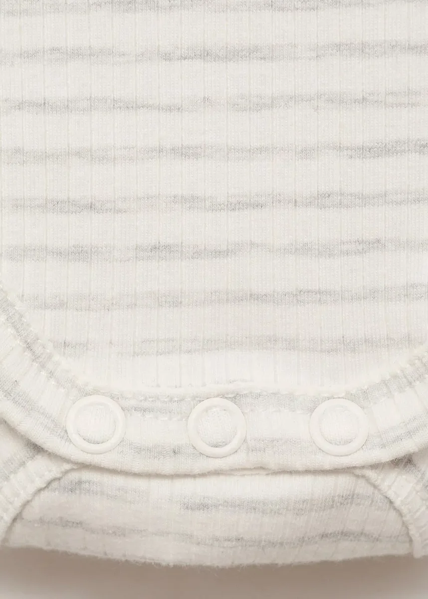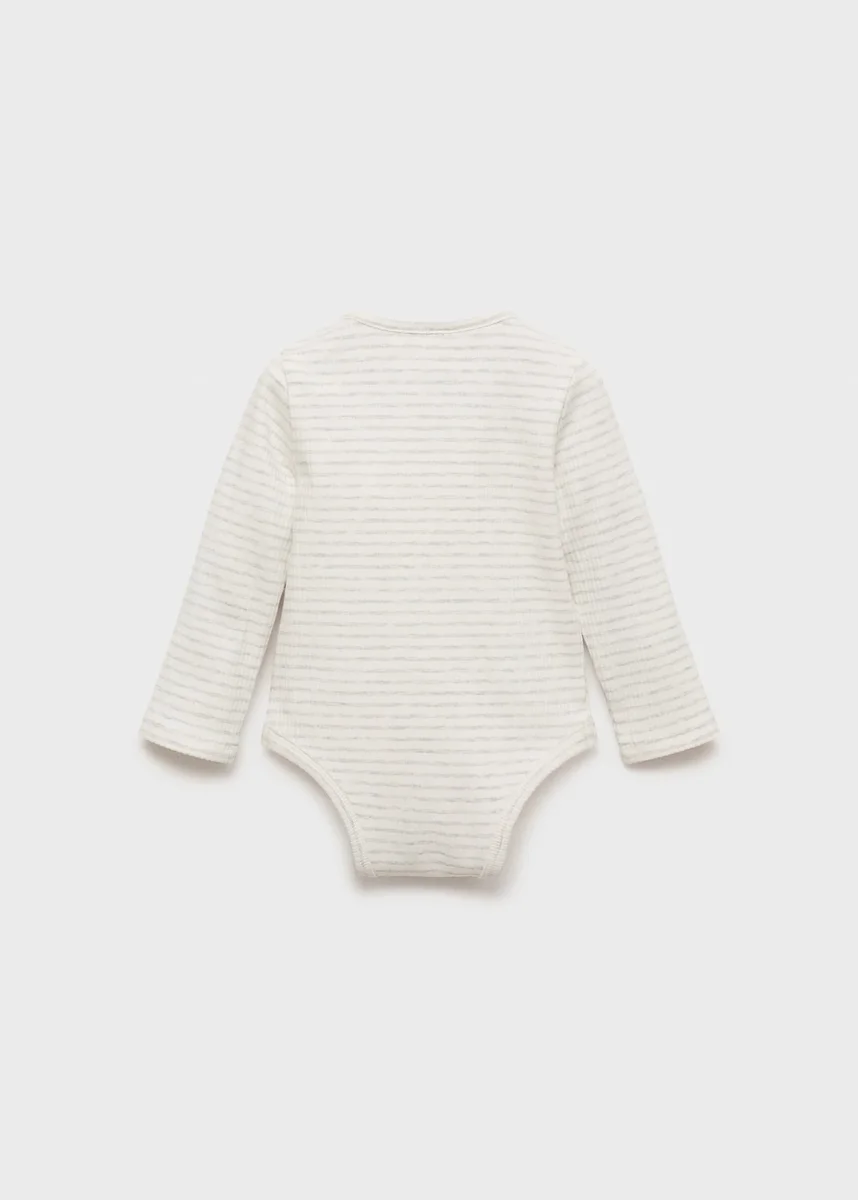 Realizzato in tessuto di cotone a righe, questo body presenta un collo rotondo con chiusura a bottoni. Ha maniche lunghe, una tasca applicata sul davanti e una chiusura a bottoni sull’orlo.