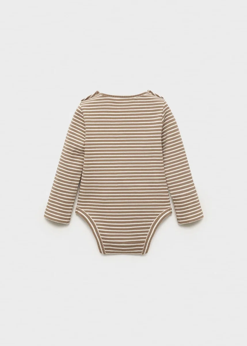 Realizzato in tessuto misto cotone, questo modello aderente presenta un motivo a righe. Ha collo rotondo, maniche lunghe e tasca applicata sul petto. Chiusura con bottoni a pressione