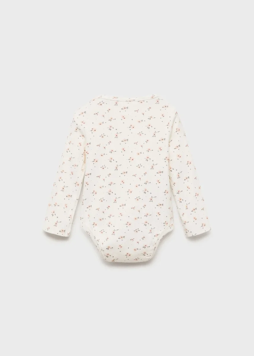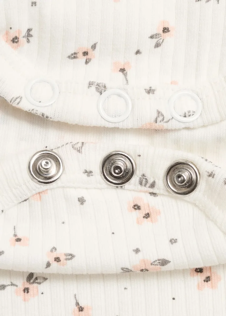 Tessuto a costine. Tessuto in cotone. Tessuto elasticizzato. Stampa floreale. Design dritto. Girocollo. Maniche lunghe. Chiusura con bottoni sul collo. Chiusura con bottoni sul fondo