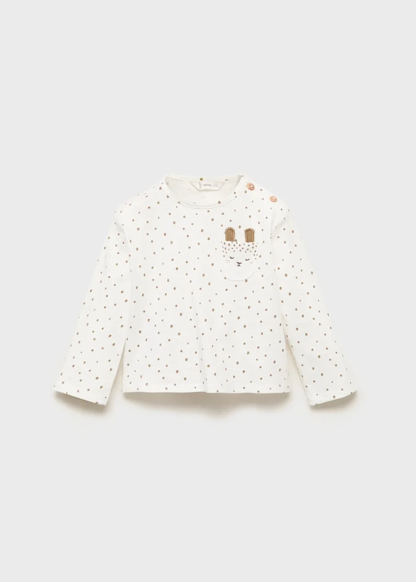 Realizzata in tessuto 100% cotone, questa t-shirt presenta un design dritto con una stampa di gattini. Ha un girocollo con chiusura a bottoni, maniche lunghe, un dettaglio ricamato e una tasca sul petto
