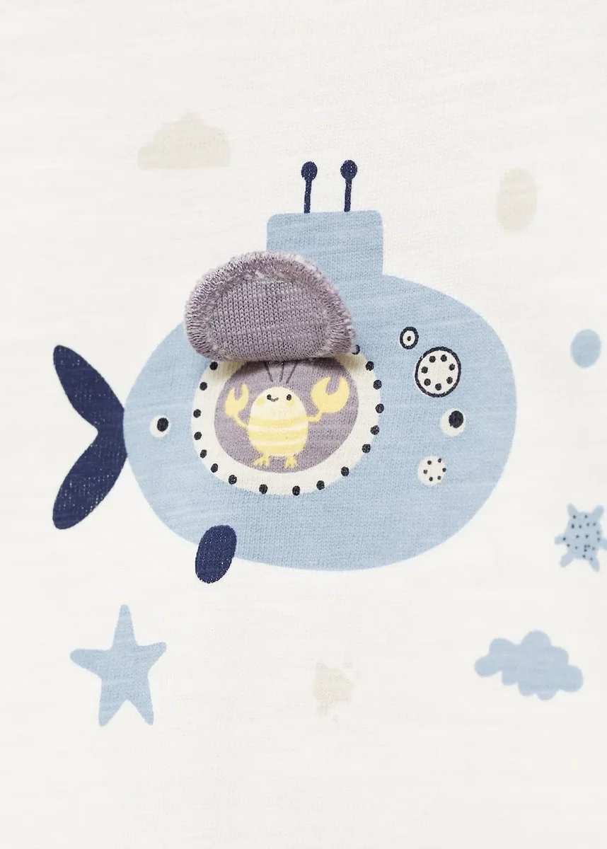 100% cotone. Modello dritto. Stampa. Girocollo. Maniche corte. Chiusura con bottoni sulla spalla.