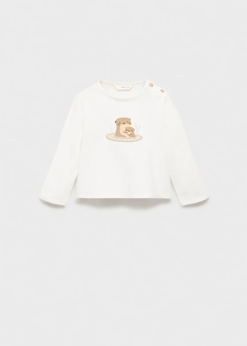 Tessuto 100% cotone. Modello dritto. Disegno stampato. Disegno ricamato. Girocollo con chiusura a bottoni. Maniche lunghe. Ricamo sul davanti. Immagine stampata sul davanti.
