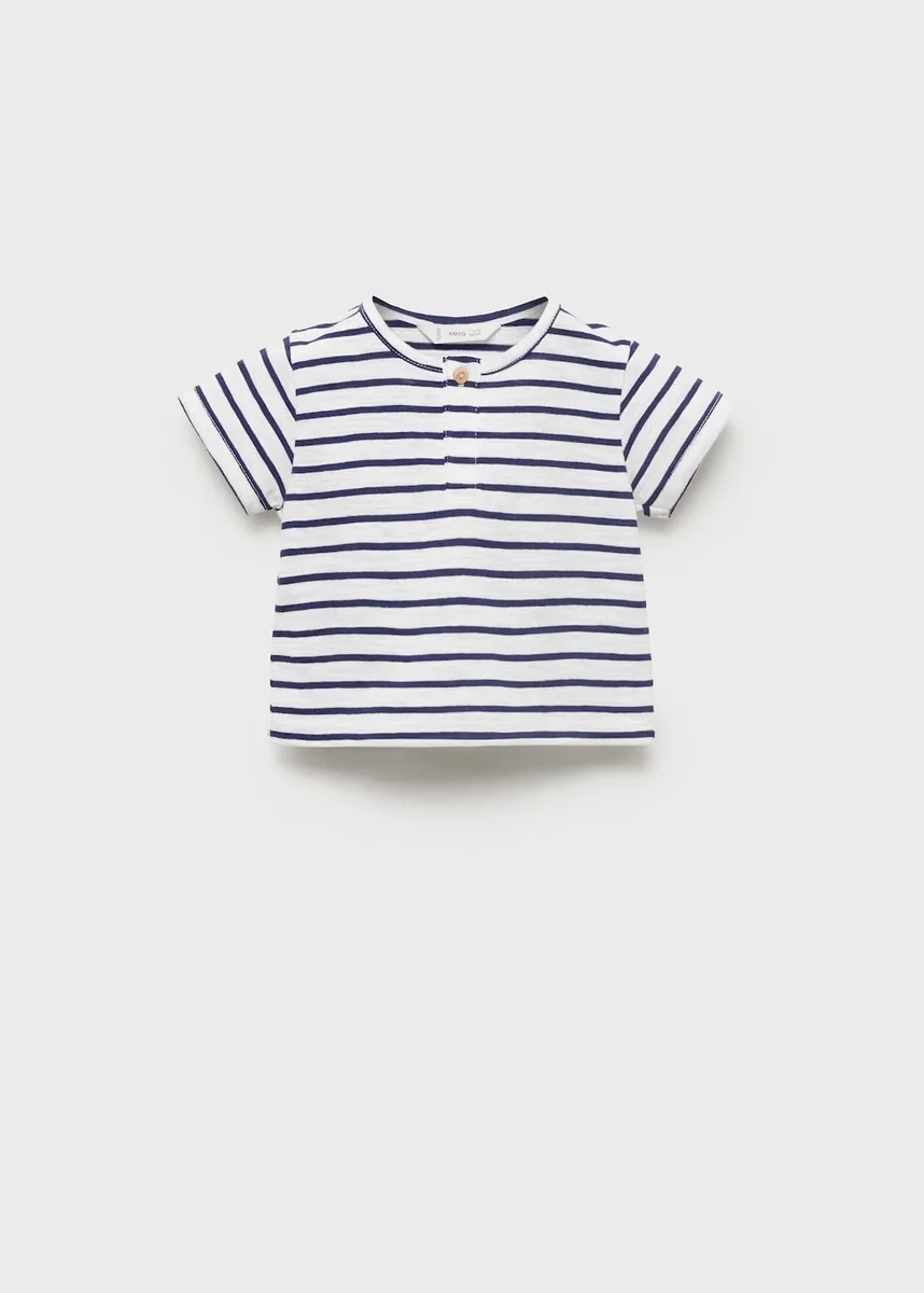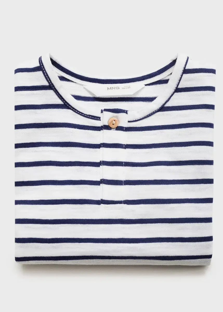 Tessuto 100% cotone. Modello corto. Modello dritto. Design a righe. Girocollo. Maniche corte. Chiusura con bottoni. Set. Black Friday