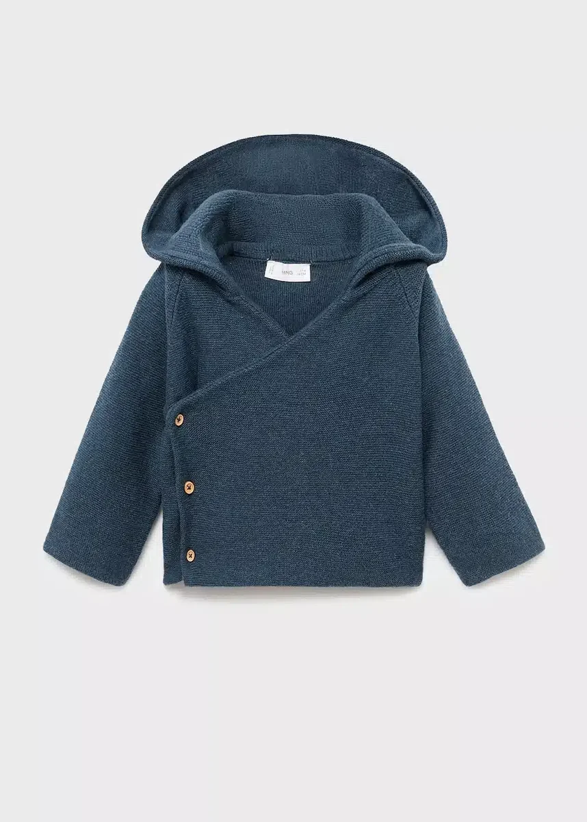 Tessuto lavorato a maglia. Tessuto in cotone. Modello avvolgente. Chiusura con bottoni sul davanti. Con cappuccio. Collezione Natale.