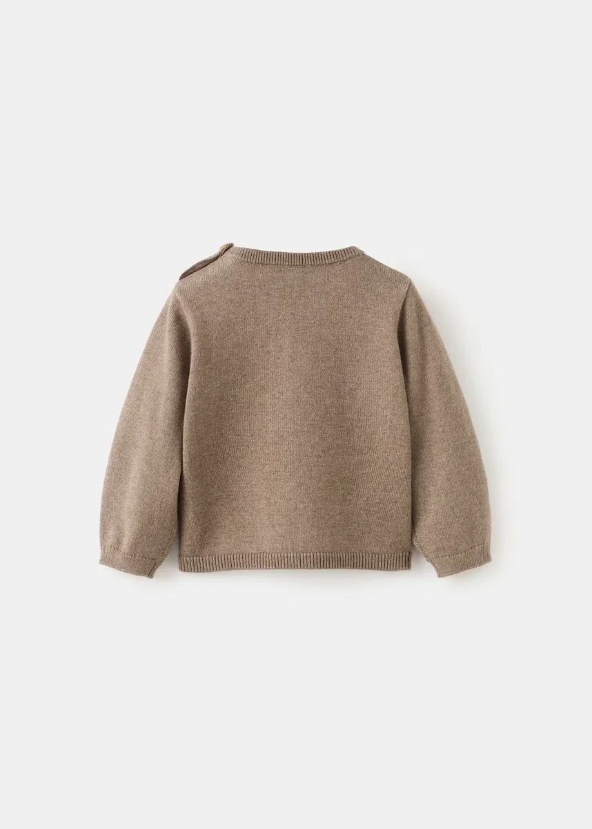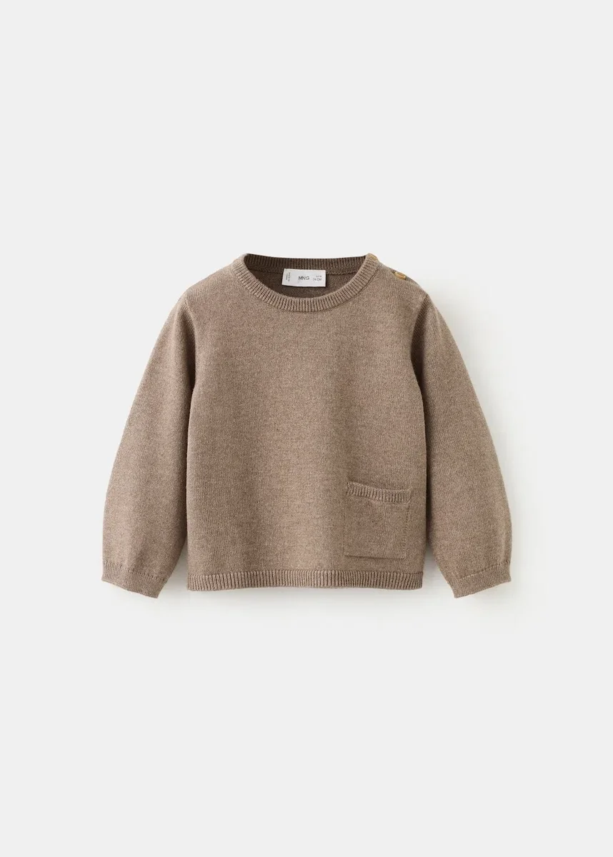 Maglia. Tessuto in cotone. Modello dritto. Girocollo con chiusura a bottoni. Maniche lunghe. Tasca applicata sul davanti. Finiture a costine.