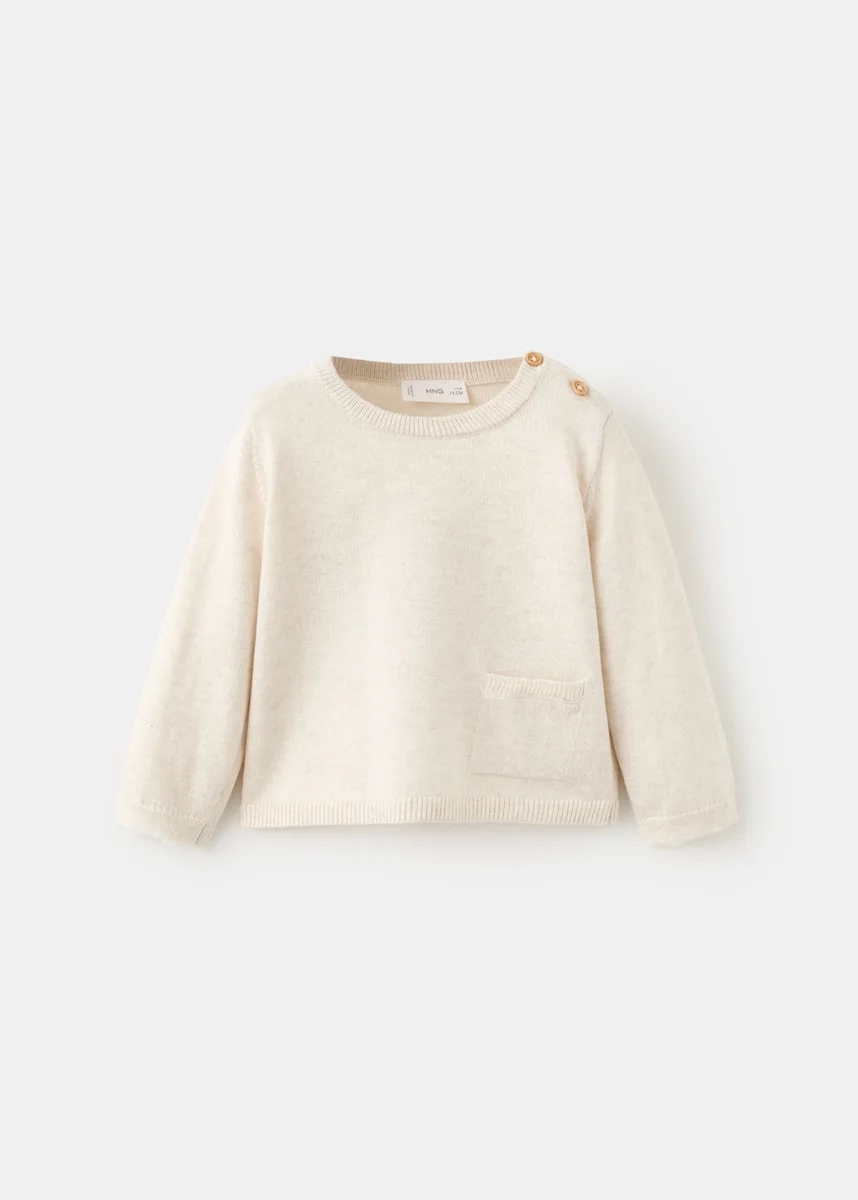 Maglia. Tessuto in cotone. Modello dritto. Girocollo con chiusura a bottoni. Maniche lunghe. Tasca applicata sul davanti. Finiture a costine.
