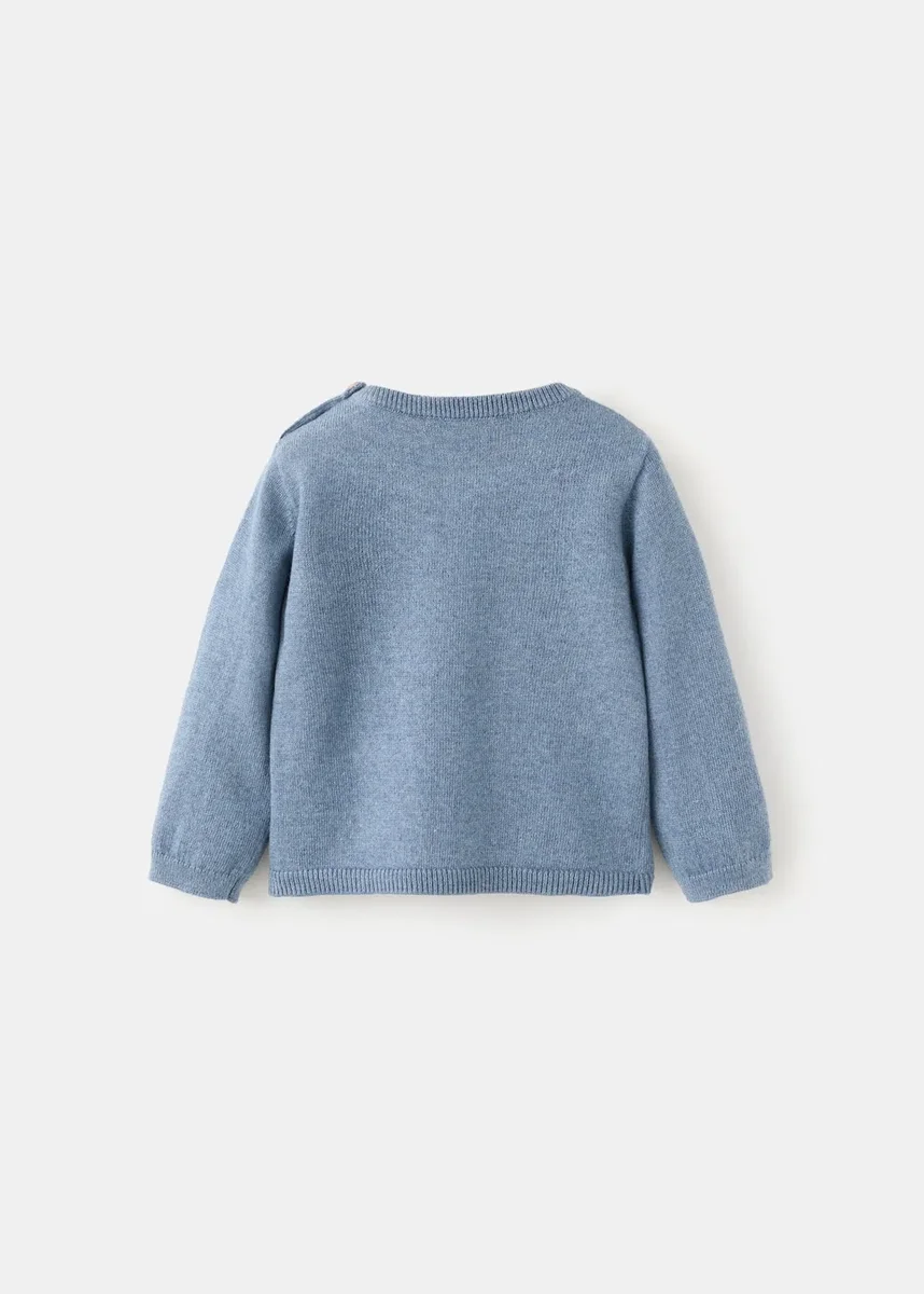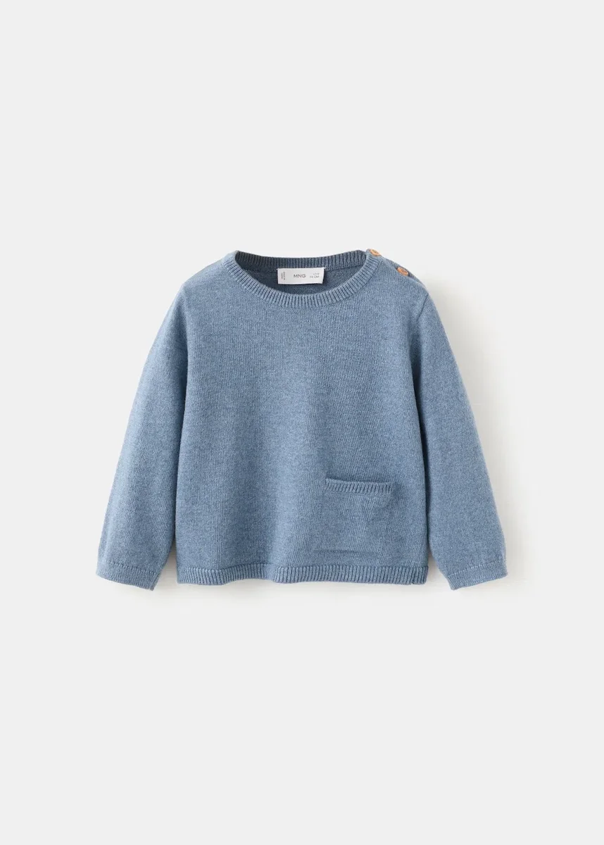Maglia. Tessuto in cotone. Modello dritto. Girocollo con chiusura a bottoni. Maniche lunghe. Tasca applicata sul davanti. Finiture a costine.
