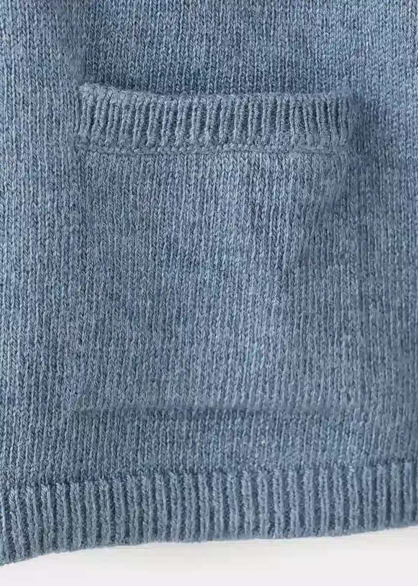 Tessuto a maglia. Tessuto in cotone. Design dritto. Collo arrotondato con chiusura a bottoni. Maniche lunghe. Tasca applicata sul davanti. Finiture a costine