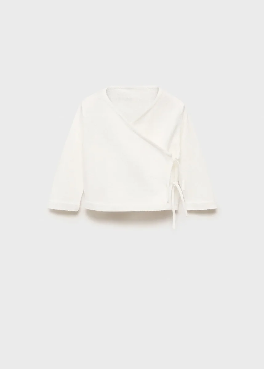 100% cotone. Design dritto. Scollo a V. Maniche lunghe. Chiusura incrociata. Chiusure laterali con lacci. Set. Collezione maternità.
