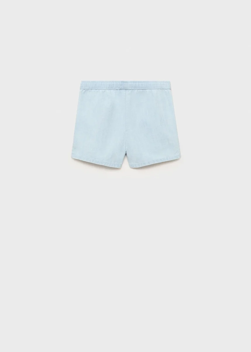 Tessuto 100% cotone. Modello in denim. Modello corto. Modello dritto. Tasche laterali. Vita elasticizzata con coulisse. Set. Black Friday.