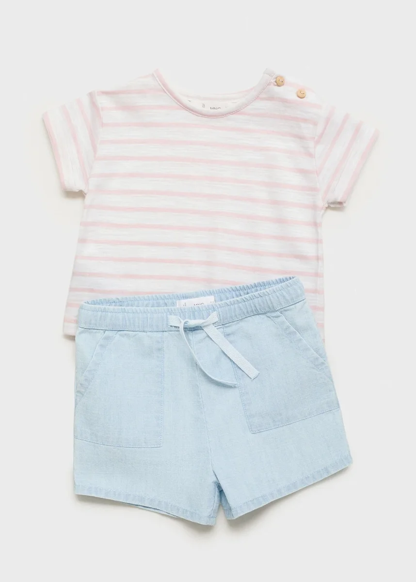 Tessuto 100% cotone. Design in denim. Modello corto. Design dritto. Tasche laterali. Elastico in vita con coulisse. Set. Black Friday