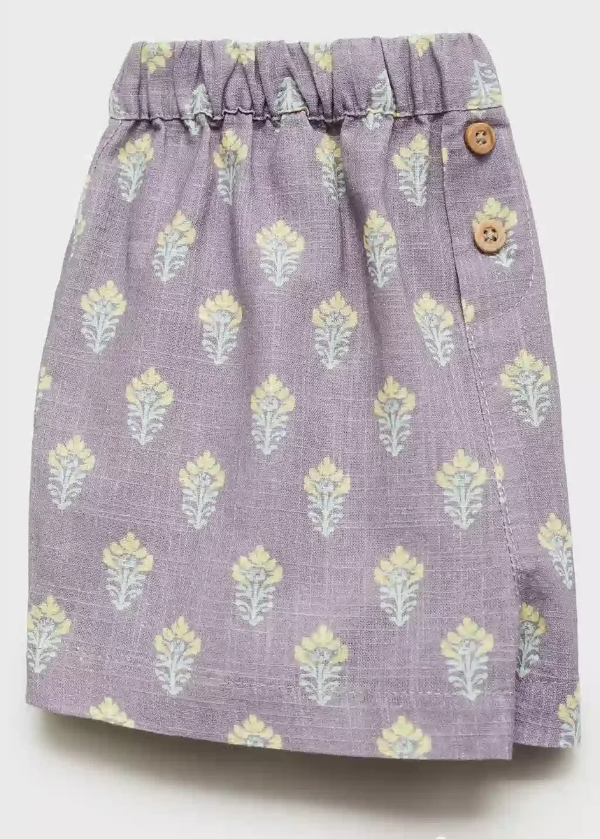 Tessuto 100% cotone. Modello dritto. Modello corto. Stampa floreale. Vita elasticizzata. Dettaglio bottoni decorativi. Set.