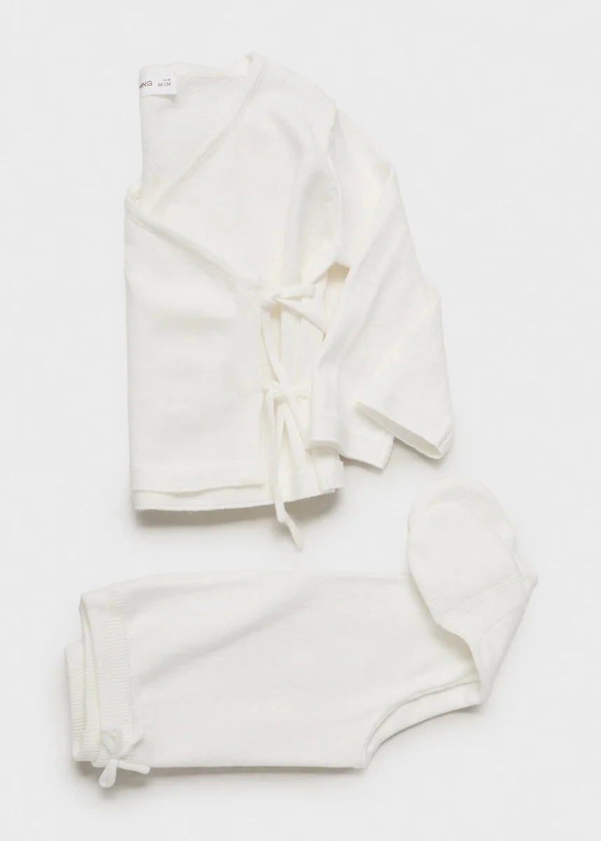 100% cotone. Design dritto. Fiocco decorativo. Set. Collezione maternità.