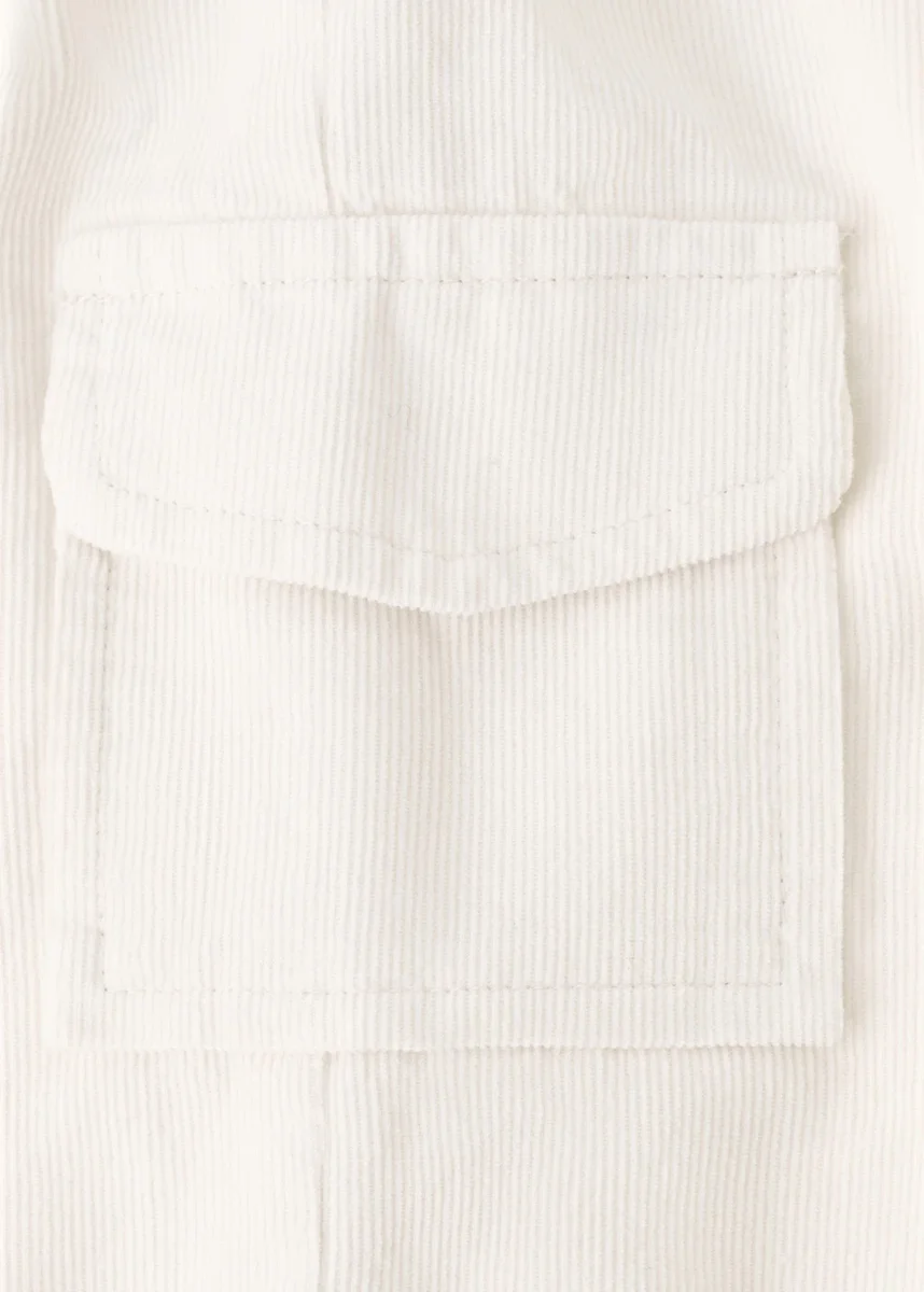 Tessuto 100% cotone. Tessuto in velluto a coste. Design cargo. Vita elasticizzata. Tasca laterale. Collezione Natale. Black Friday.