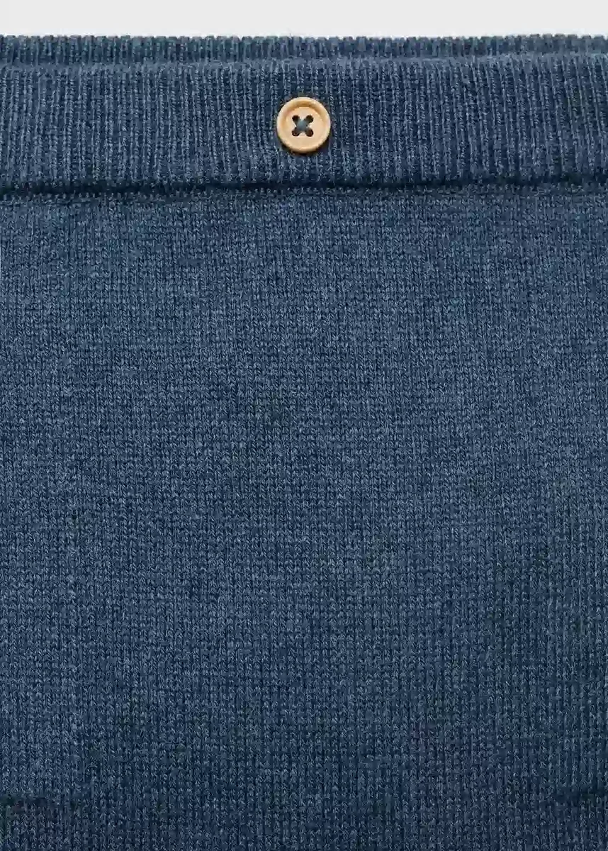 Tessuto lavorato a maglia. Tessuto in cotone. Modello lungo. Vestibilità comoda. Elastico in vita. Due tasche laterali. Bottone decorativo
