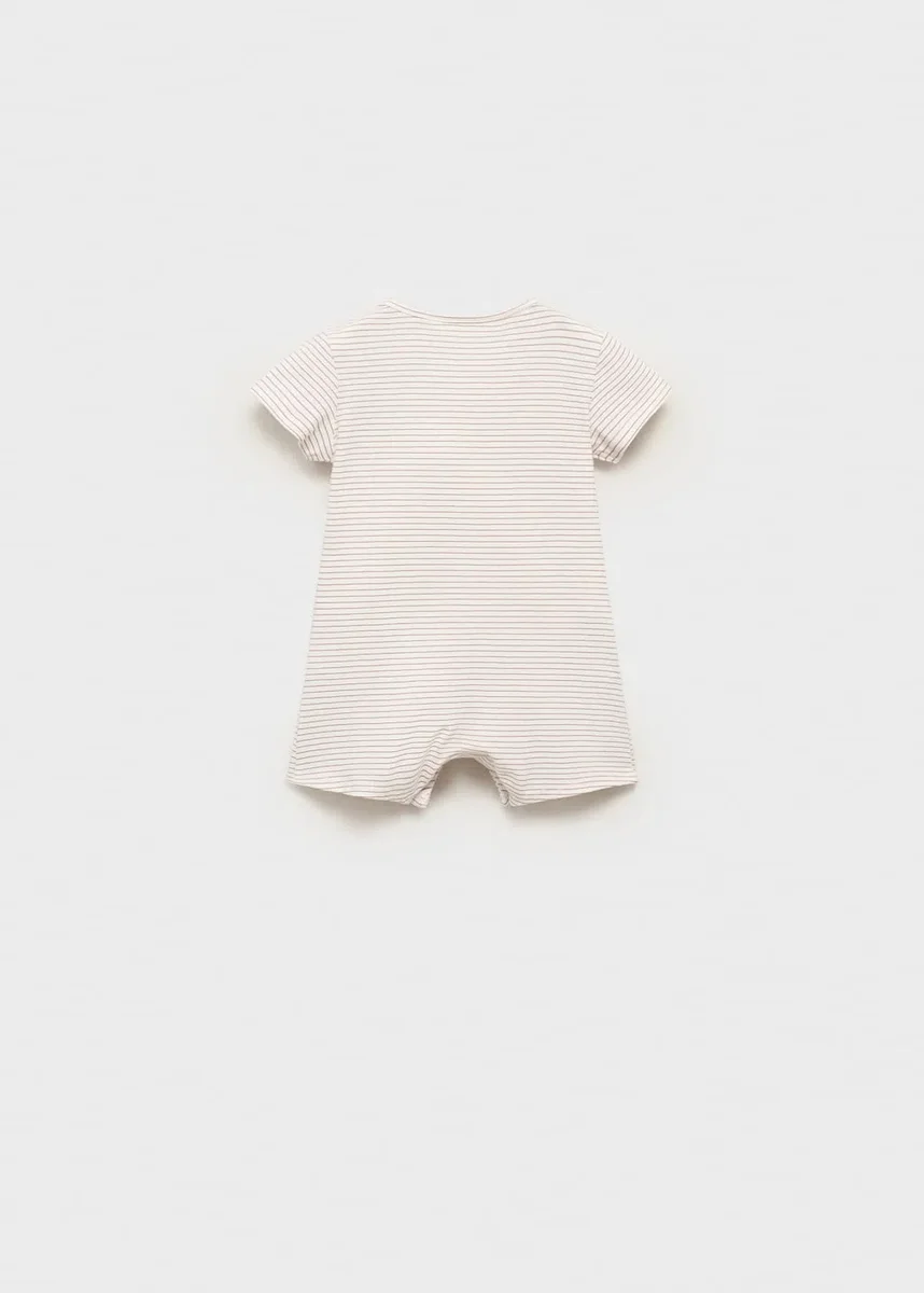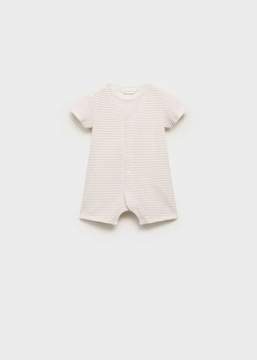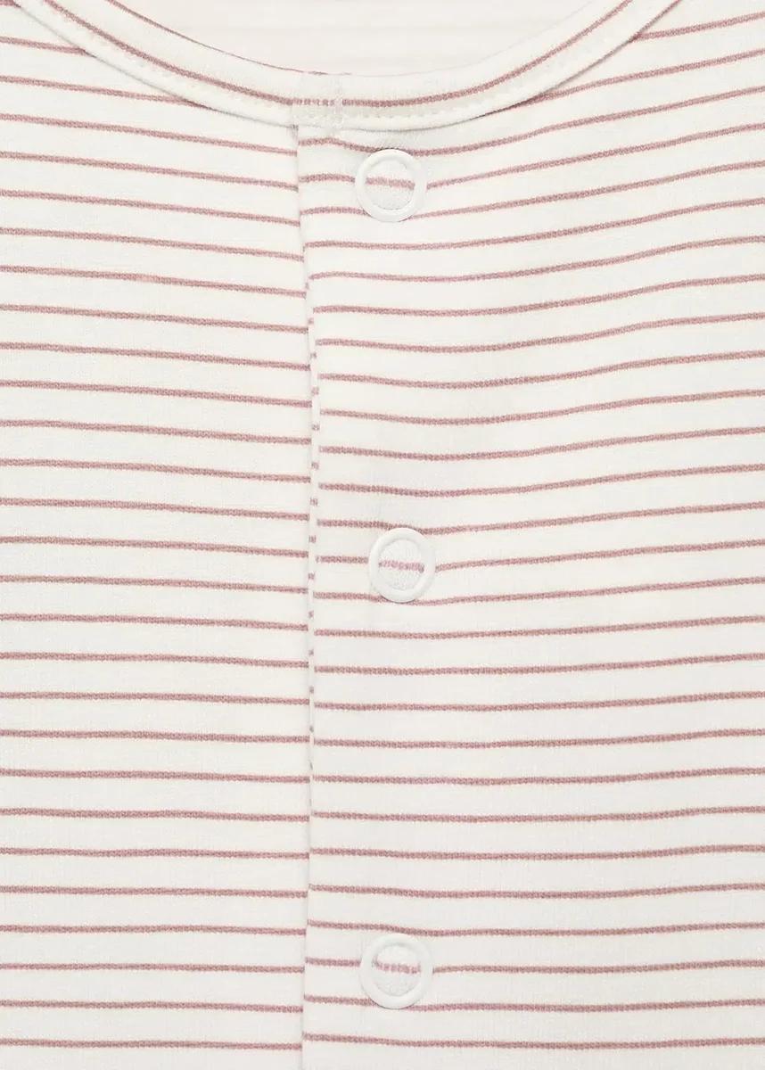 Tessuto in cotone. Modello dritto. Modello corto. Design a righe. Girocollo. Maniche corte. Chiusura con bottoni sul davanti.