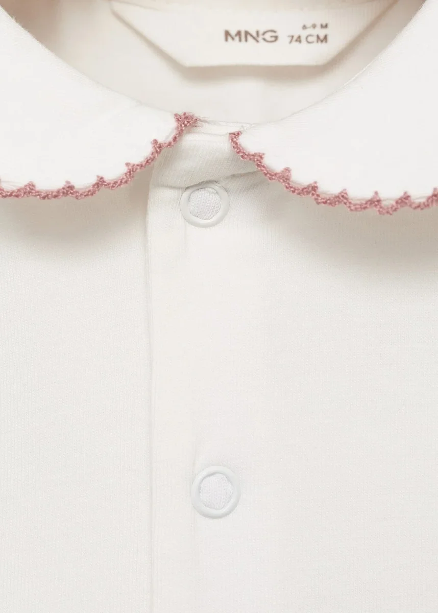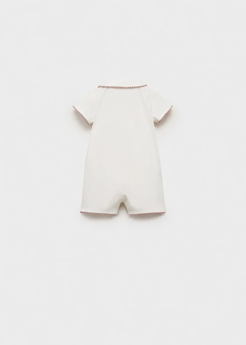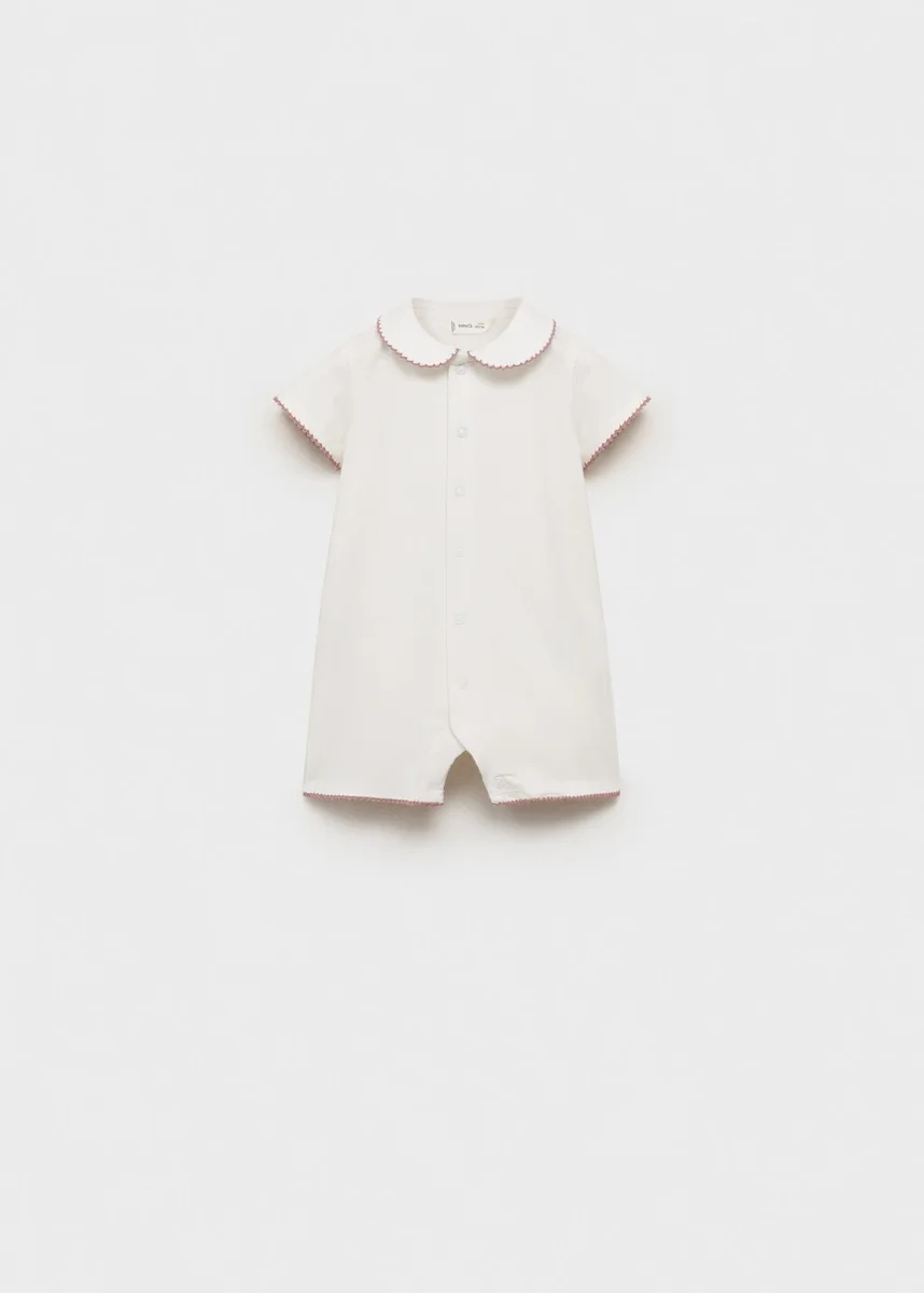 Tessuto in cotone. Modello dritto. Modello corto. Collo babydoll. Maniche corte. Chiusura frontale con bottoni. Finiture a contrasto