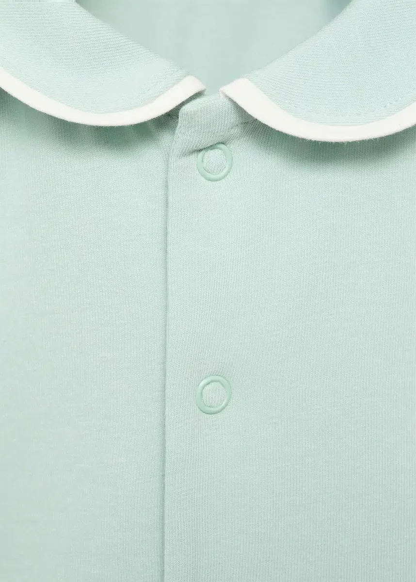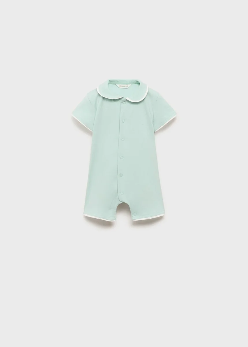Tessuto in cotone. Modello corto. Taglio dritto. Collo babydoll. Maniche corte. Chiusura con bottoni sul davanti. Chiusura con bottoni a pressione. Finiture a contrasto.